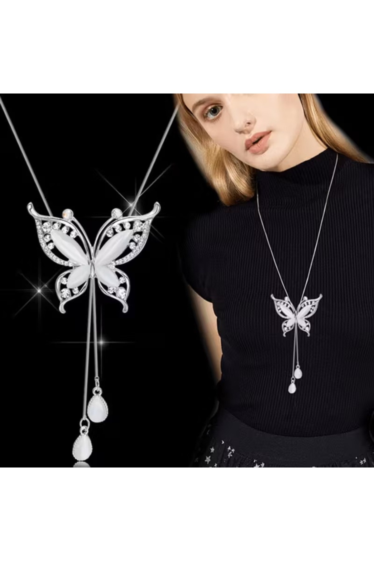 Kore Stil Zirkon Taş Uzun Zincir Kelebek Asansör Kolye Kore Stil Zirkon Taş Uzun Zincir Kelebek Asansör Kolye SAls524 M