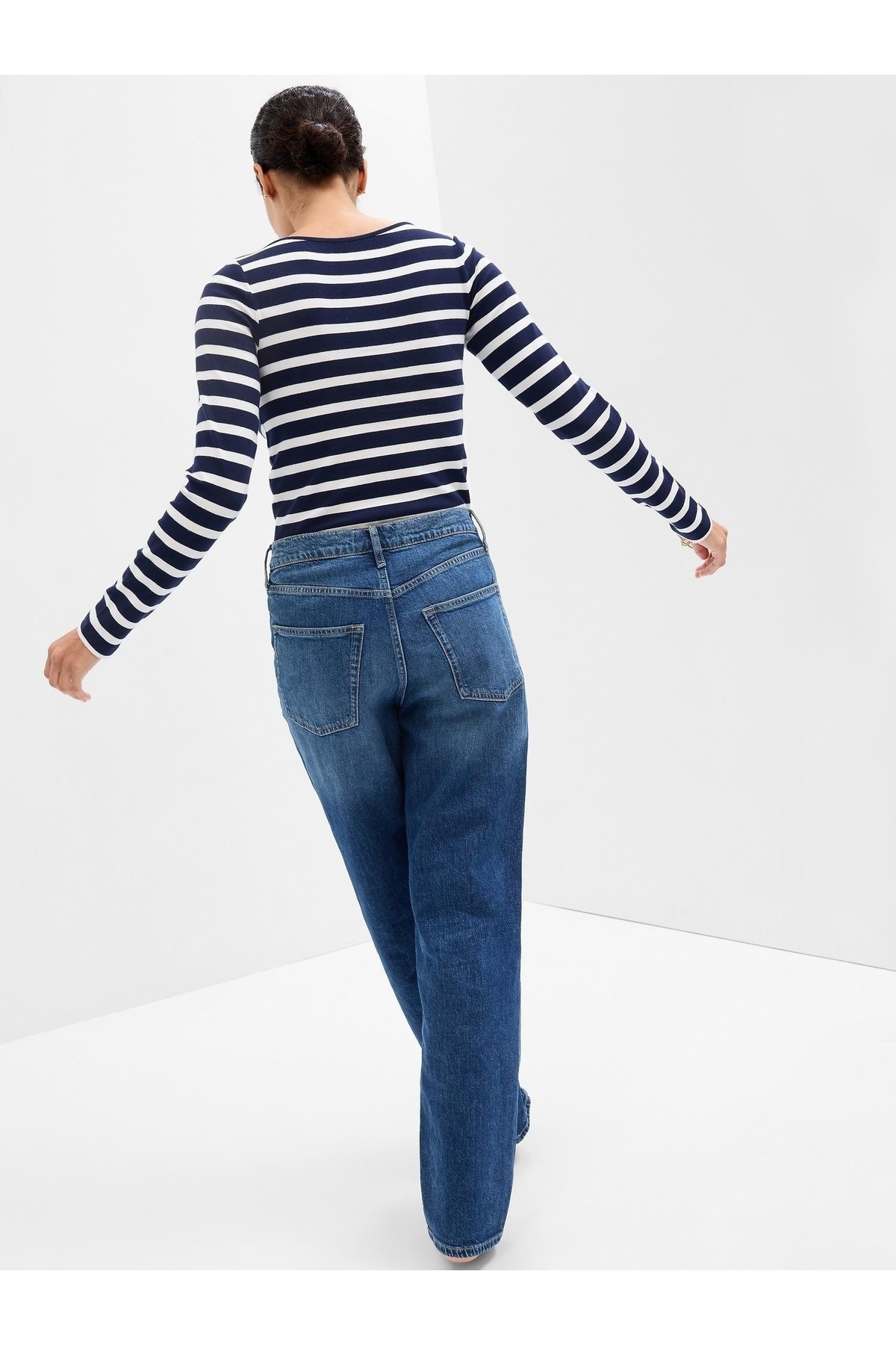 Kadın Lacivert Çizgili Uzun Kollu T-Shirt Kadın Lacivert Çizgili Uzun Kollu T-Shirt 797732 2XL
