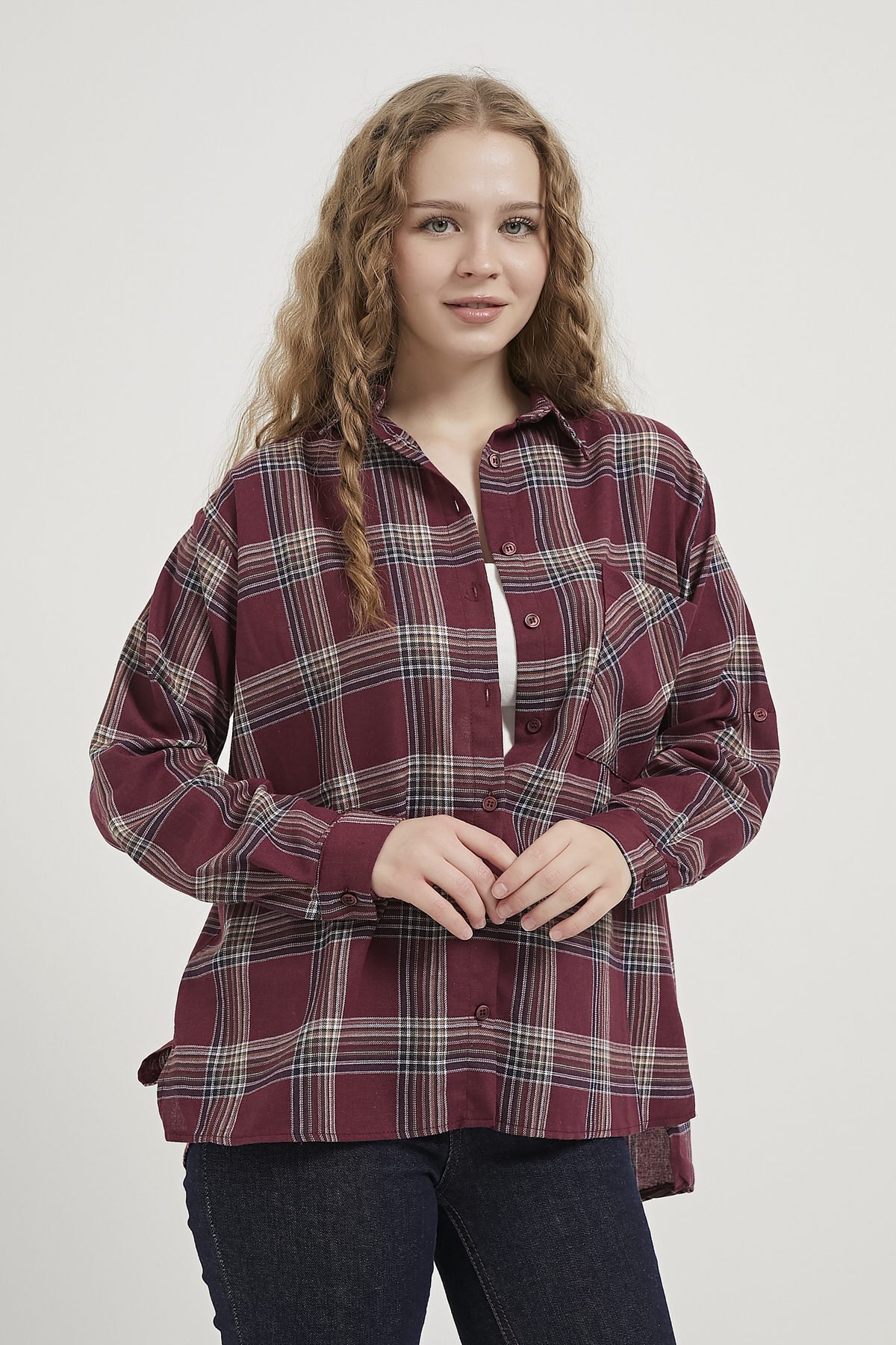 Regular Fit Shirt Neck Ekoseli Kadın Bordo Uzun Kol Gömlek Regular Fit Shirt Neck Ekoseli Kadın Bordo Uzun Kol Gömlek .CL1065062_Q1.V1_BRD L