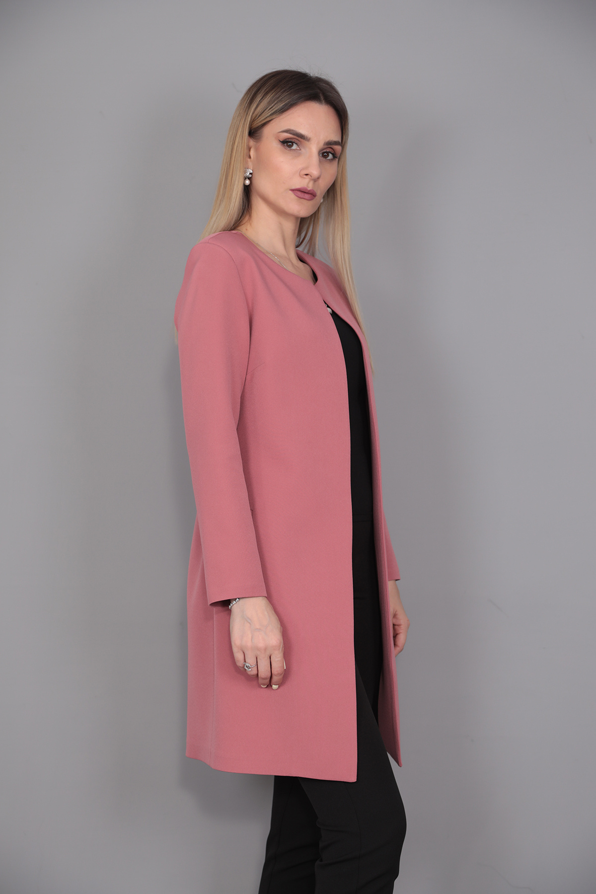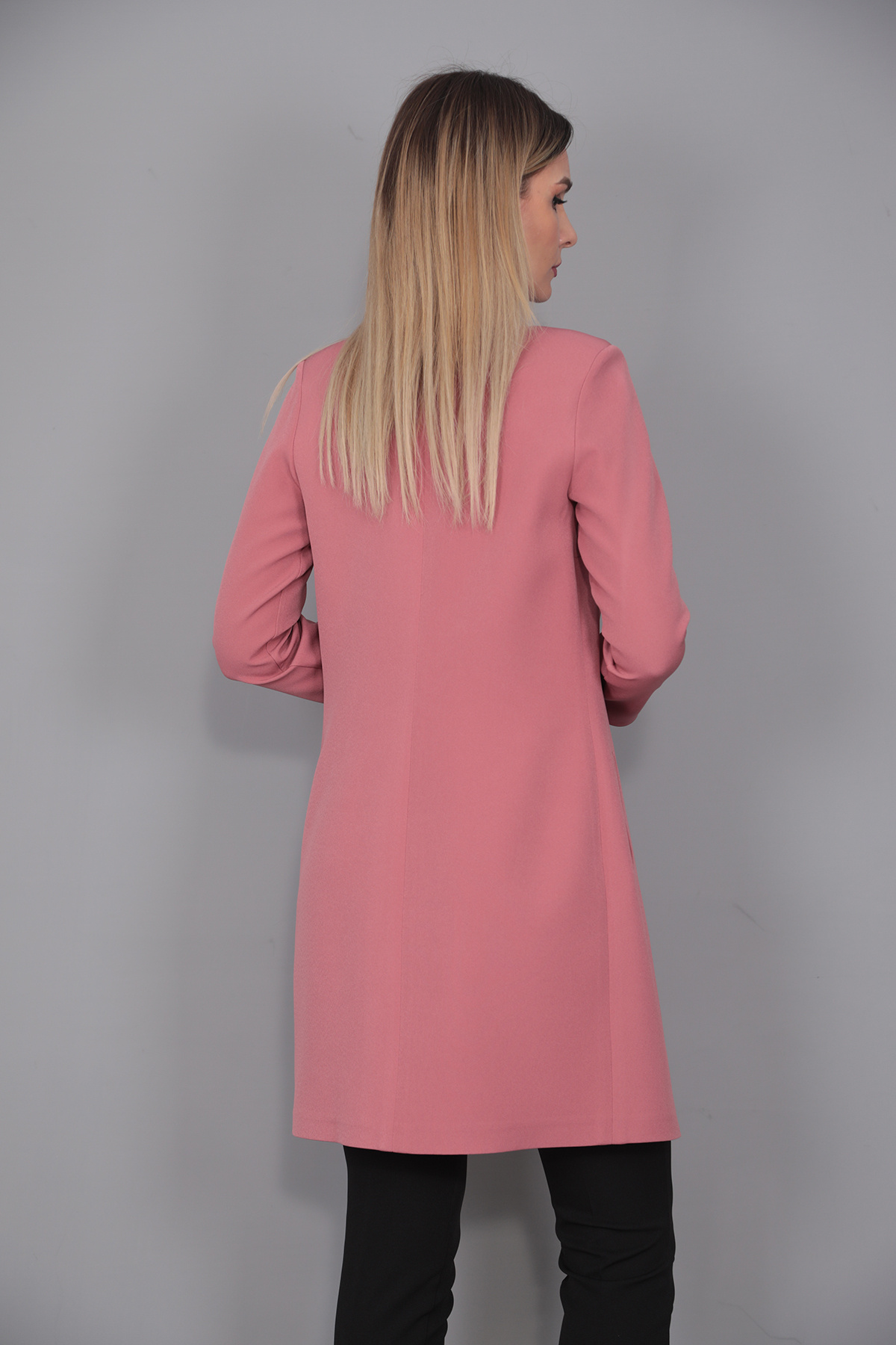 Sıfır Yaka Düz Uzun Ceket-Gül Kurusu Sıfır Yaka Düz Uzun Ceket-Gül Kurusu 1005100 52