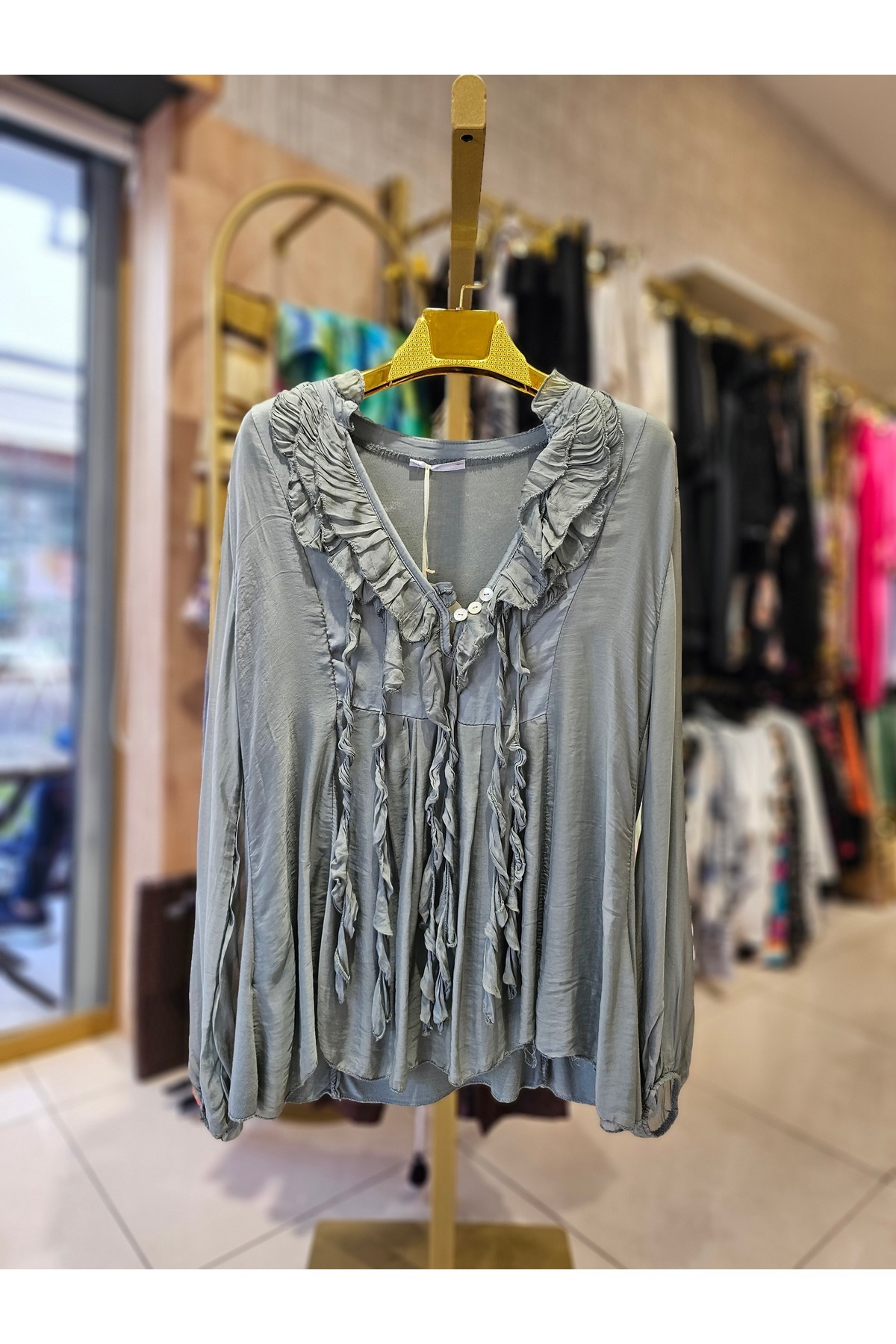 İtalyan Yarasa Kollu İpek Bluz İtalyan Yarasa Kollu İpek Bluz BHM1319-111-2 Standart