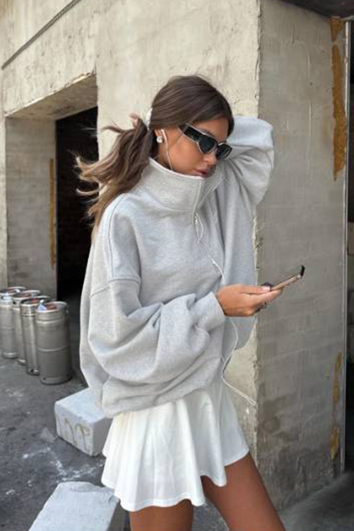 Grimelanj Fermuar Detaylı Oversize Sweatshirt MG1933 Grimelanj Fermuar Detaylı Oversize Sweatshirt MG1933 XL