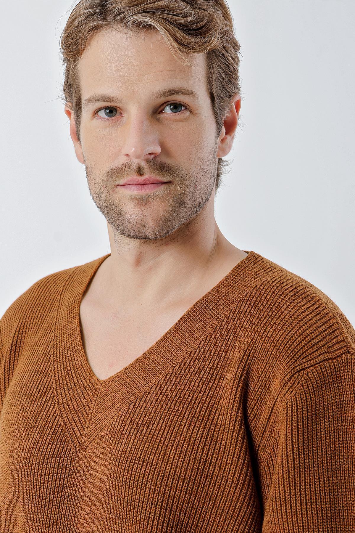 Erkek Genova V Yaka Standart Fit Triko Kazak Tarçın 24w209 Erkek Genova V Yaka Standart Fit Triko Kazak Tarçın 24w209 24W209 2XL