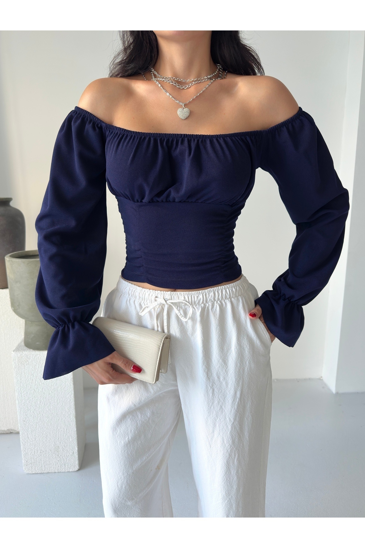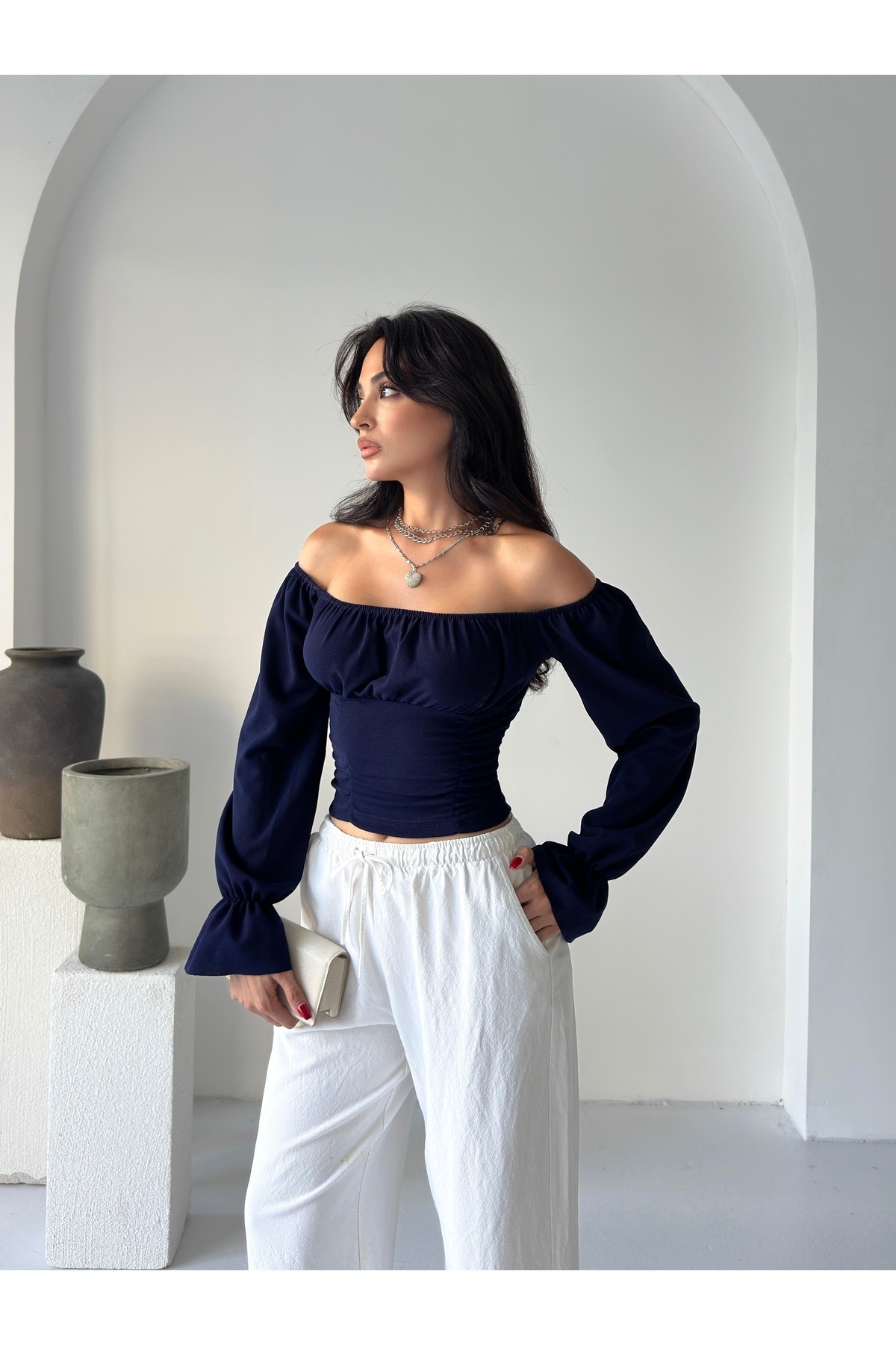 KADIN KAYIK YAKA BÜZGÜ DETAYLI BALON KOLLU KREP BLUZ KADIN KAYIK YAKA BÜZGÜ DETAYLI BALON KOLLU KREP BLUZ TYCM2XPILN169434618431584 XL