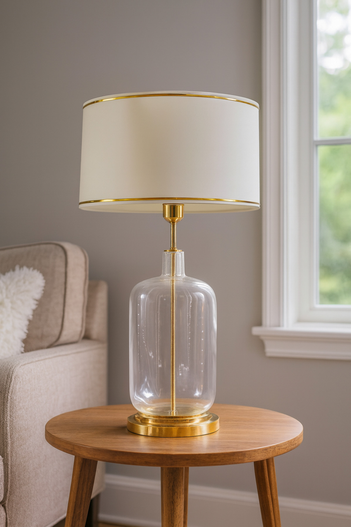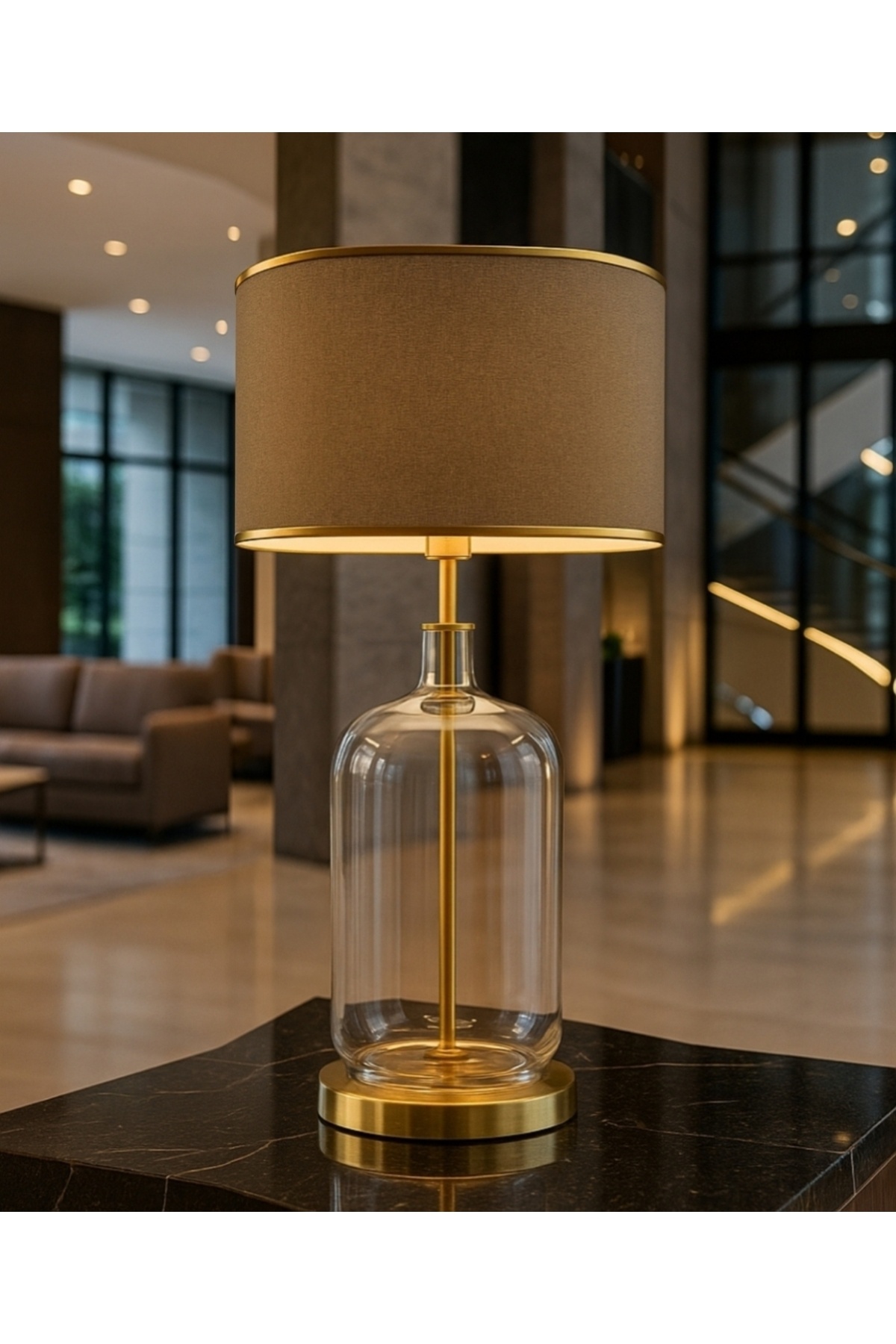 Elenore Gold Kaplama Cam Abajur - Krem Gold Şeritli Elenore Gold Kaplama Cam Abajur - Krem Gold Şeritli ELNGKCA01 تک سایز