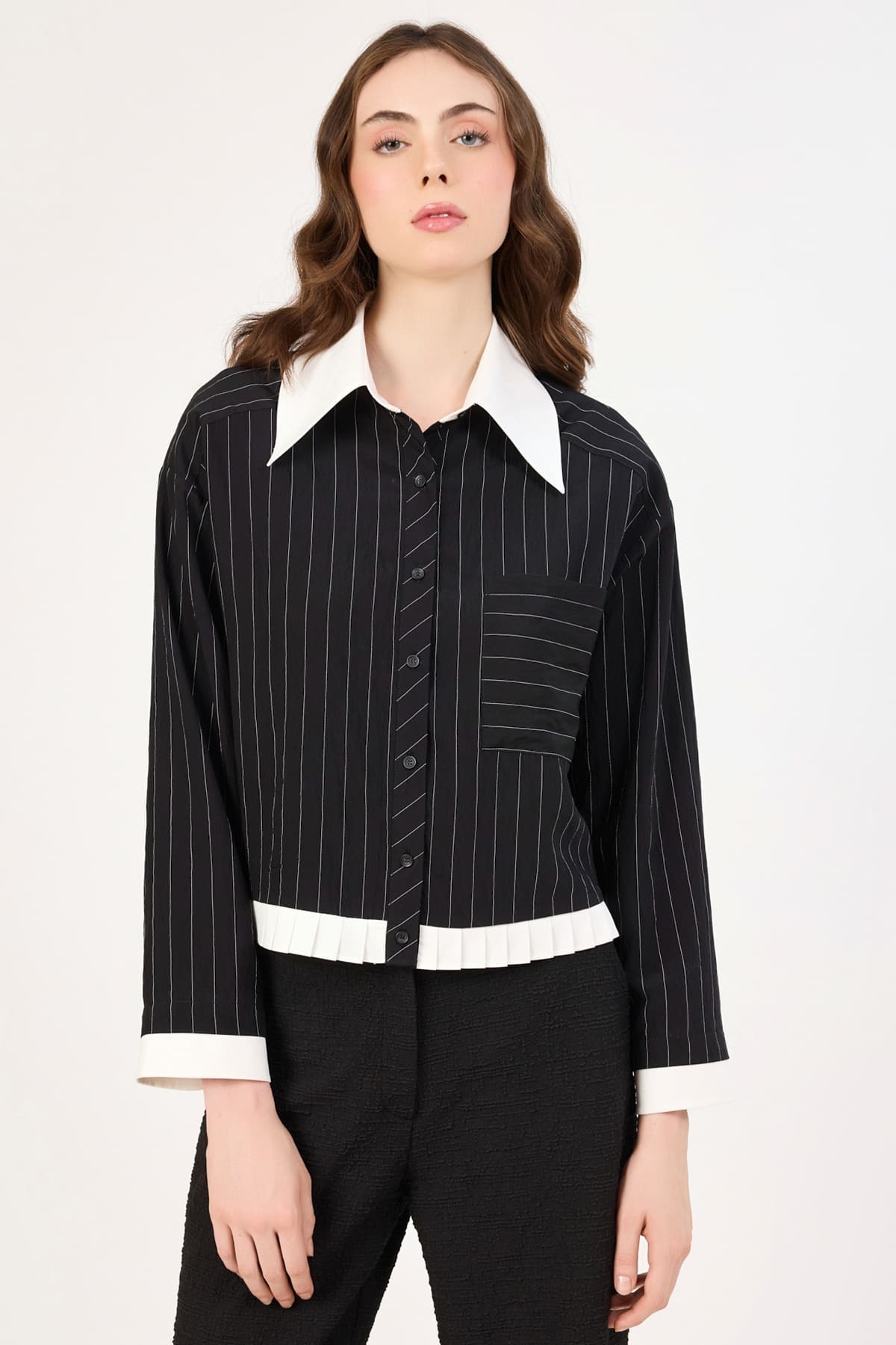 Cep detaylı çizgili gömlek Cep detaylı çizgili gömlek 332117039 4