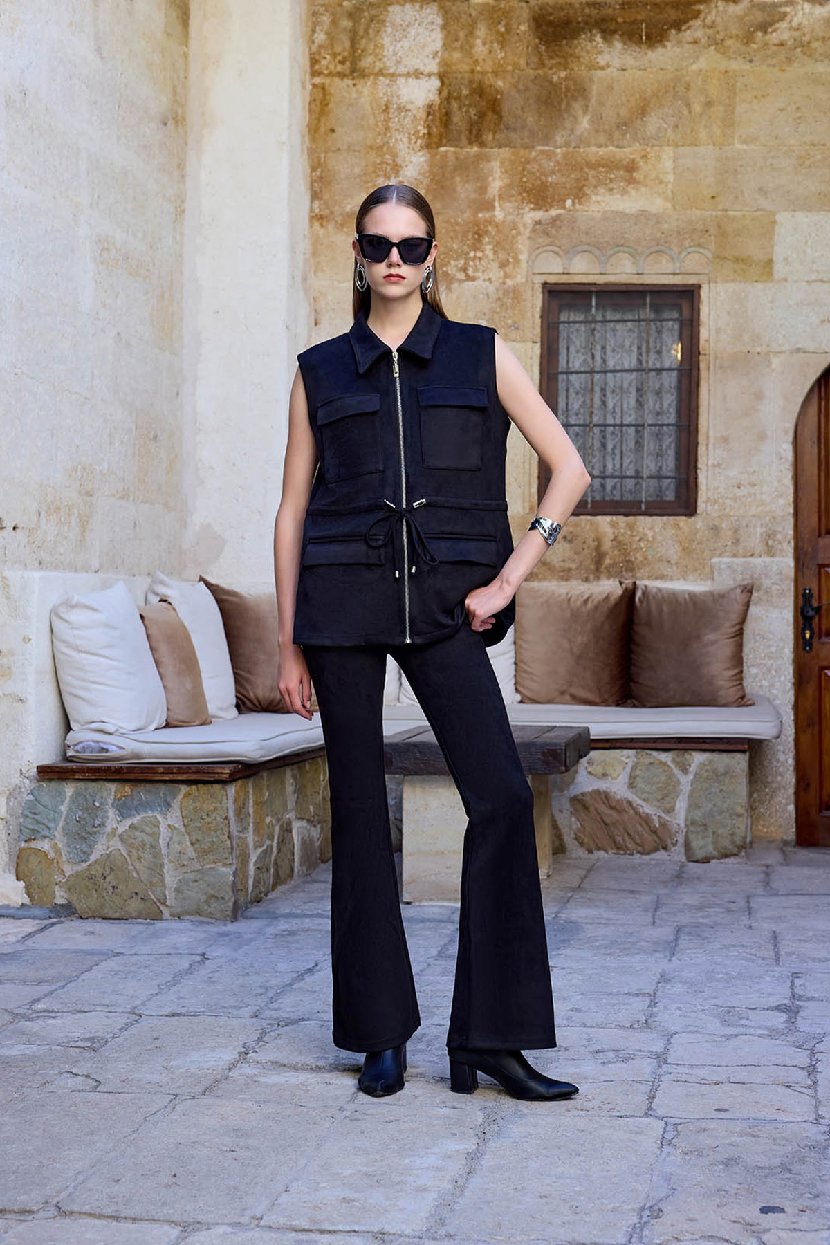 Yüksek Bel Ispanyol Paça Süet Kumaş Pantolon Yüksek Bel Ispanyol Paça Süet Kumaş Pantolon 23-7009 XL