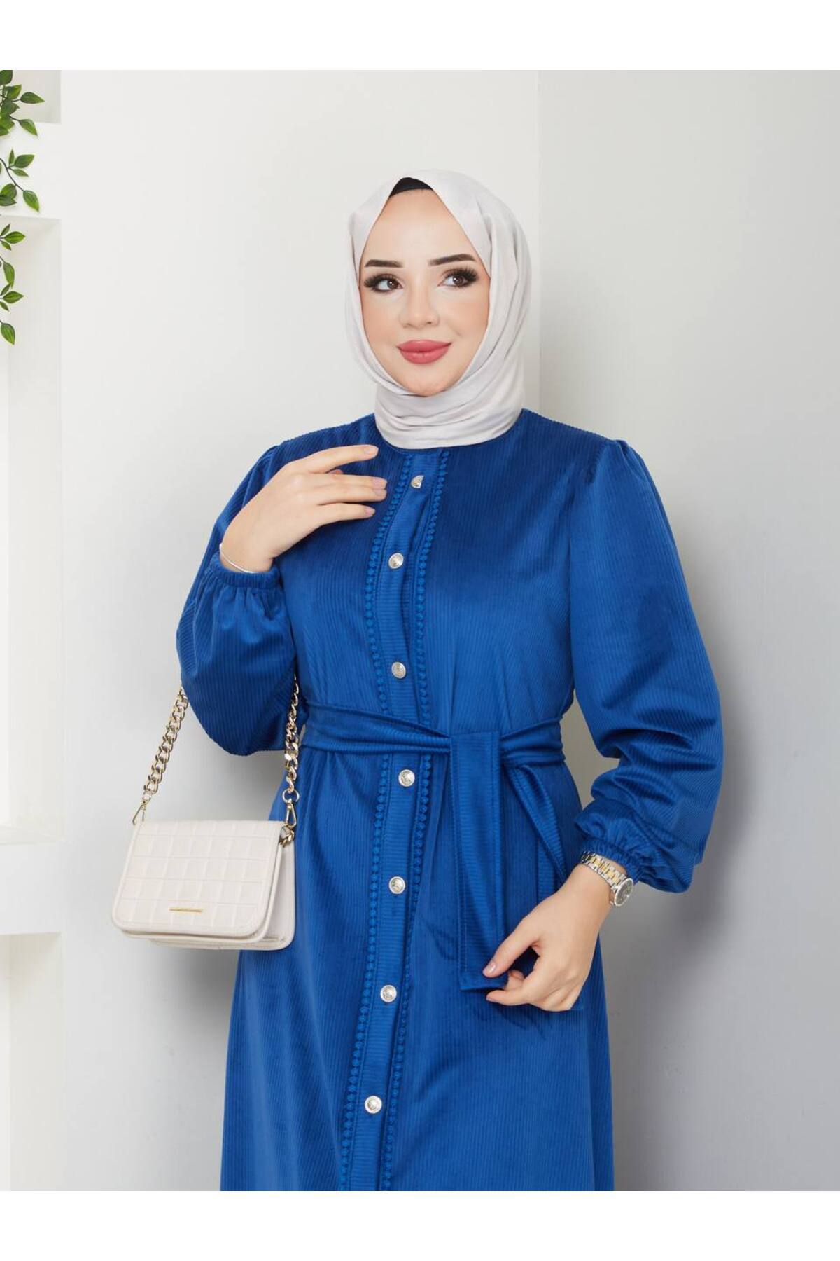 Uzun Boy Kuşaklı Kadife Elbise Uzun Boy Kuşaklı Kadife Elbise 224754 5XL