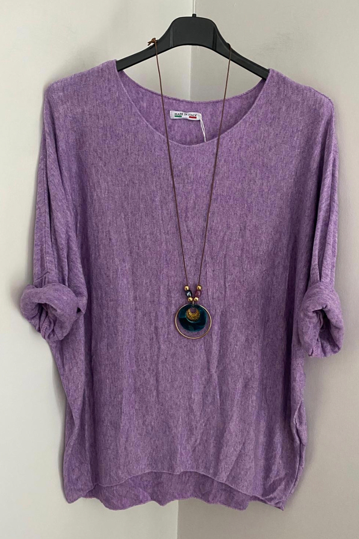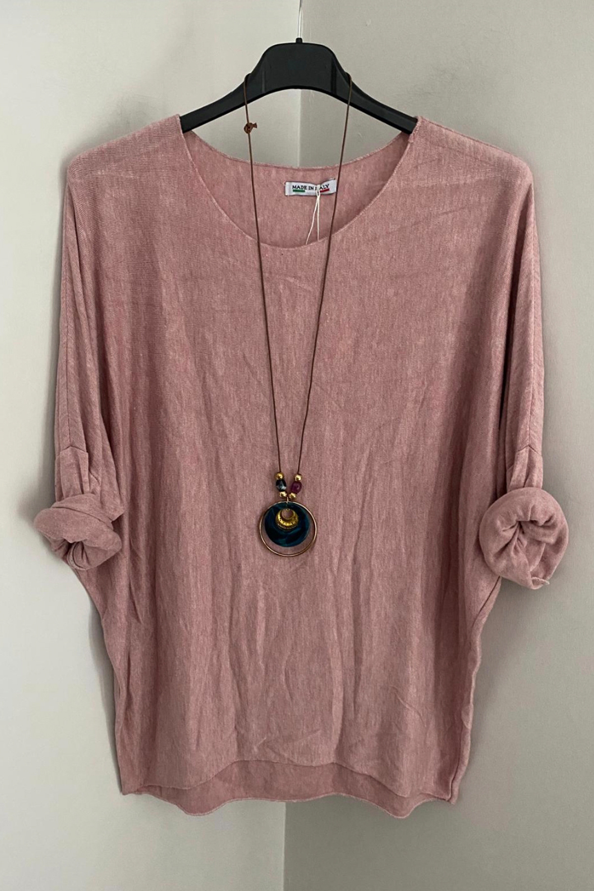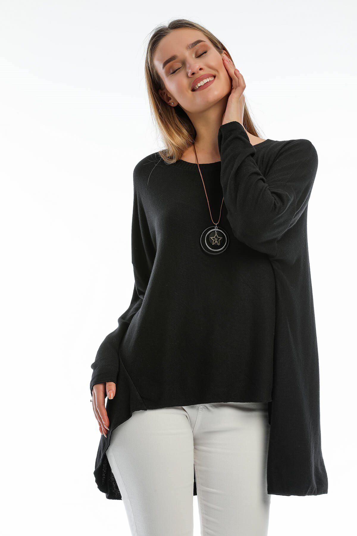 Kadın Italyan Gri Kolye Aksesuarlı Salaş Triko Bluz Kadın Italyan Gri Kolye Aksesuarlı Salaş Triko Bluz 610-23-ITALYAN Standart