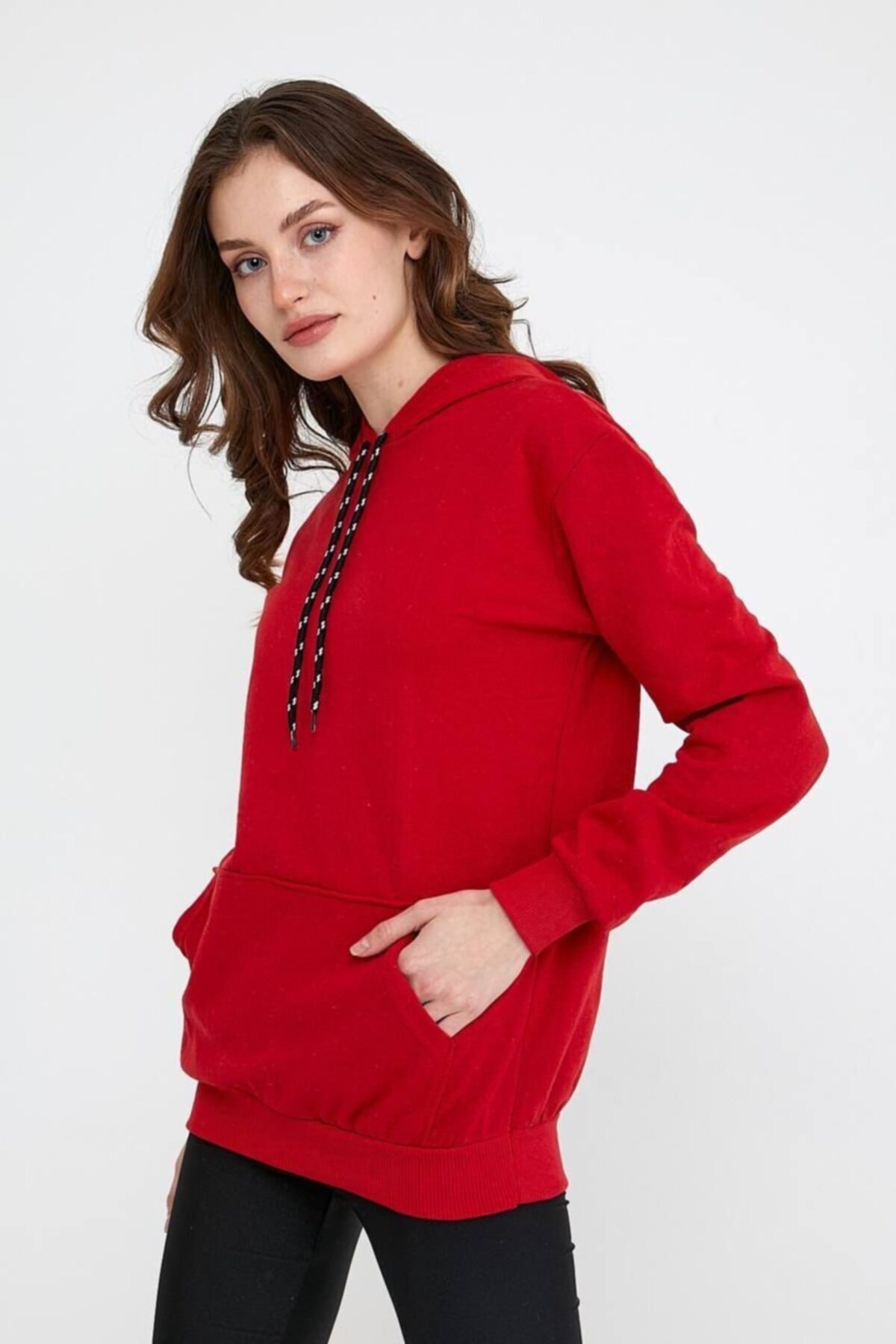 Kadın Kırımızı 3 Iplik Şardonlu Kapüşonlu Kanguru Oversize Hoodie Kadın Kırımızı 3 Iplik Şardonlu Kapüşonlu Kanguru Oversize Hoodie 3iplikKadınhoodie 2XL