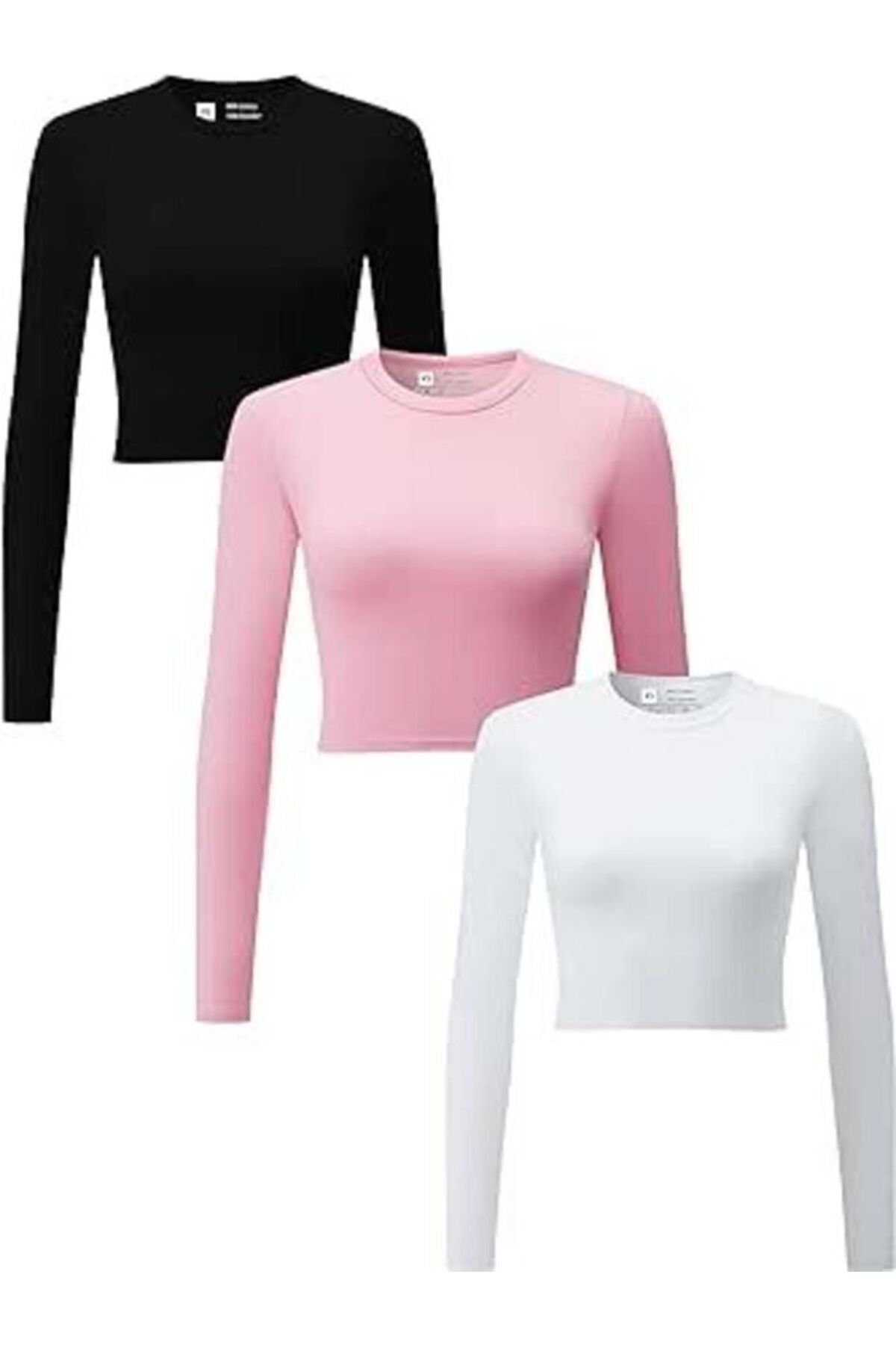 Kadın 3 lü Adet Fitilli %100 PAMUKLU Bisiklet Yaka Örme Kaşkorse Uzun Kol Crop Bluz Kadın 3 lü Adet Fitilli %100 PAMUKLU Bisiklet Yaka Örme Kaşkorse Uzun Kol Crop Bluz ÖZ PAMUK UZUN-CROPE1 L