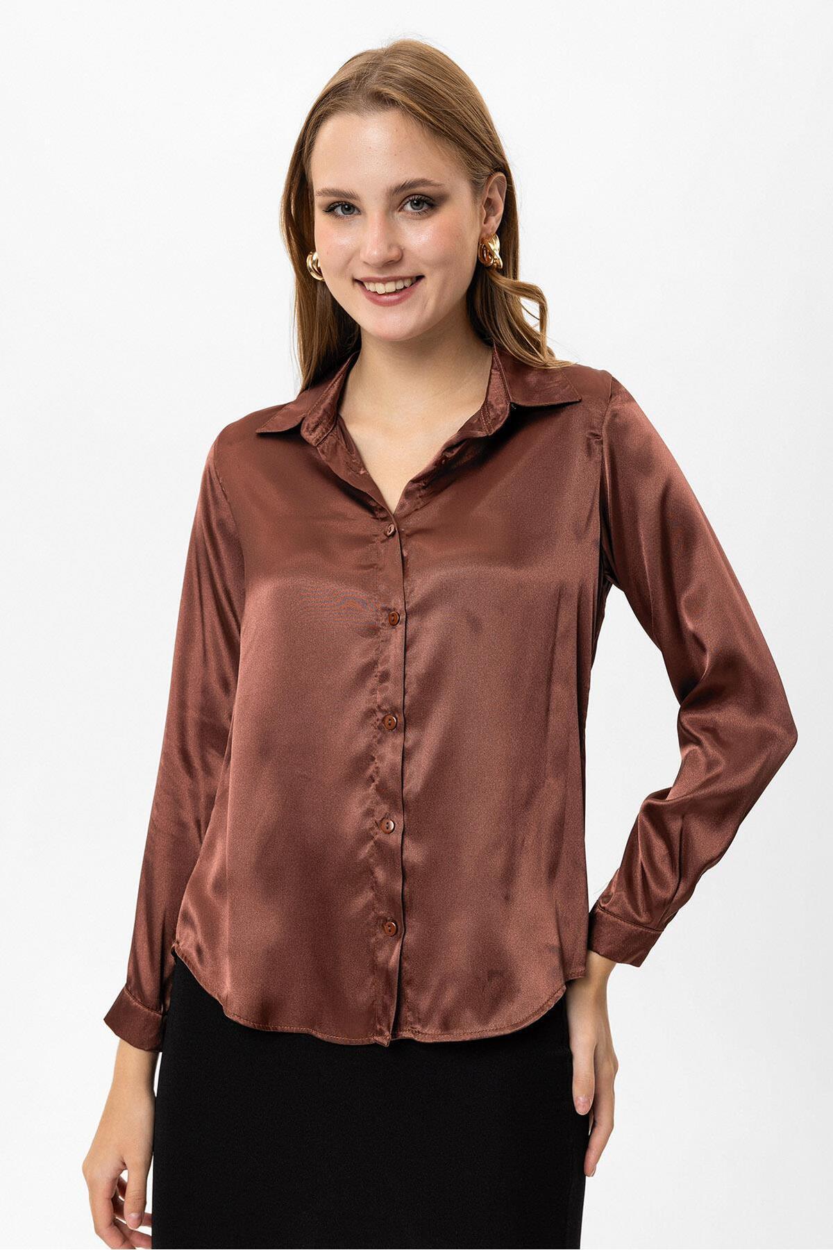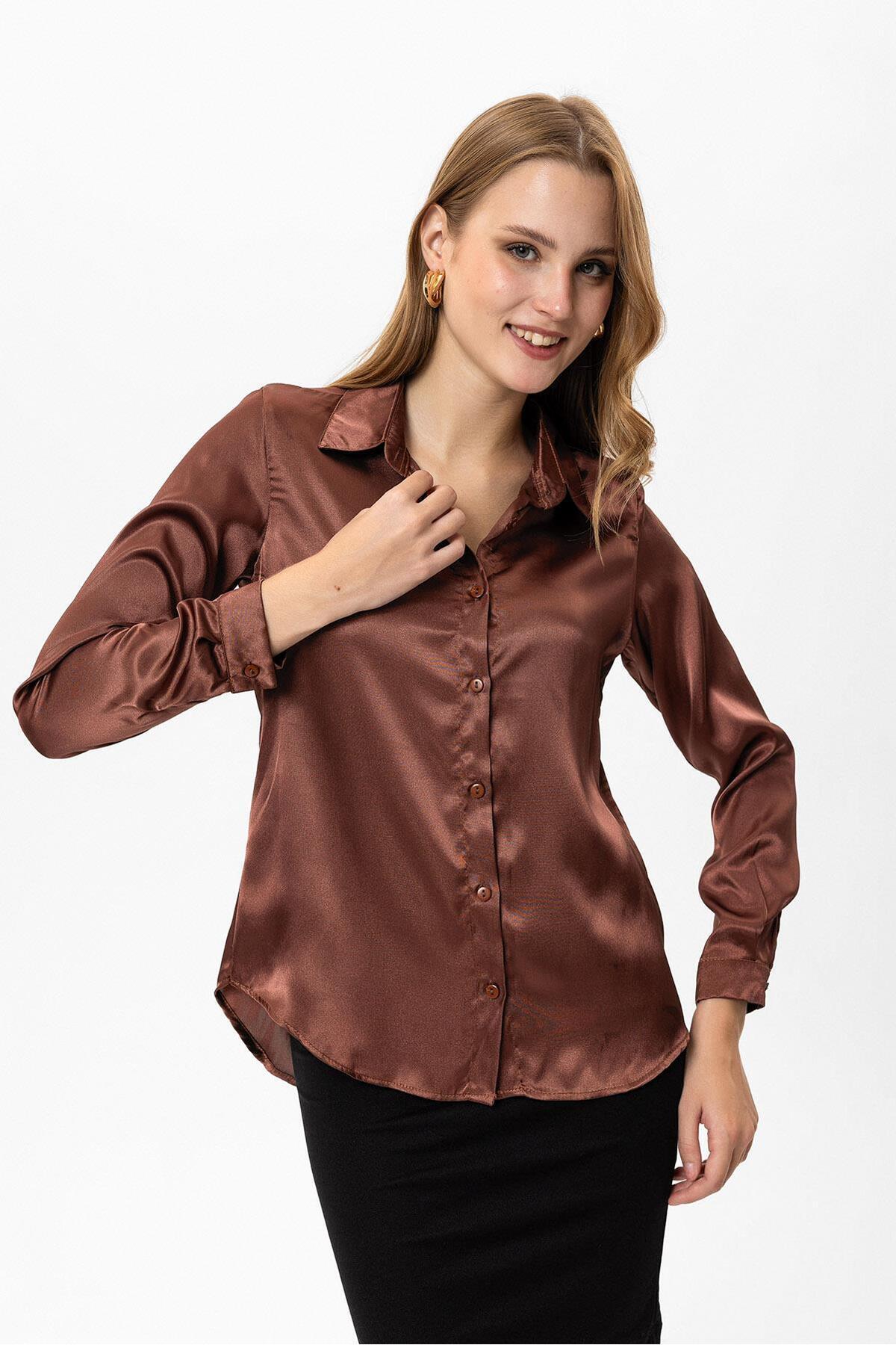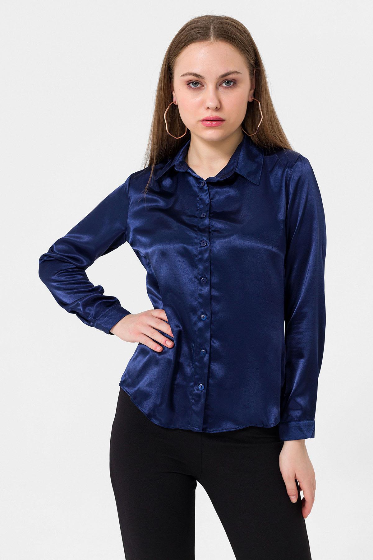 Kadın Uzun Kol Saten Gömlek 255123 - Kadın Uzun Kol Saten Gömlek 255123 - 230124 XL