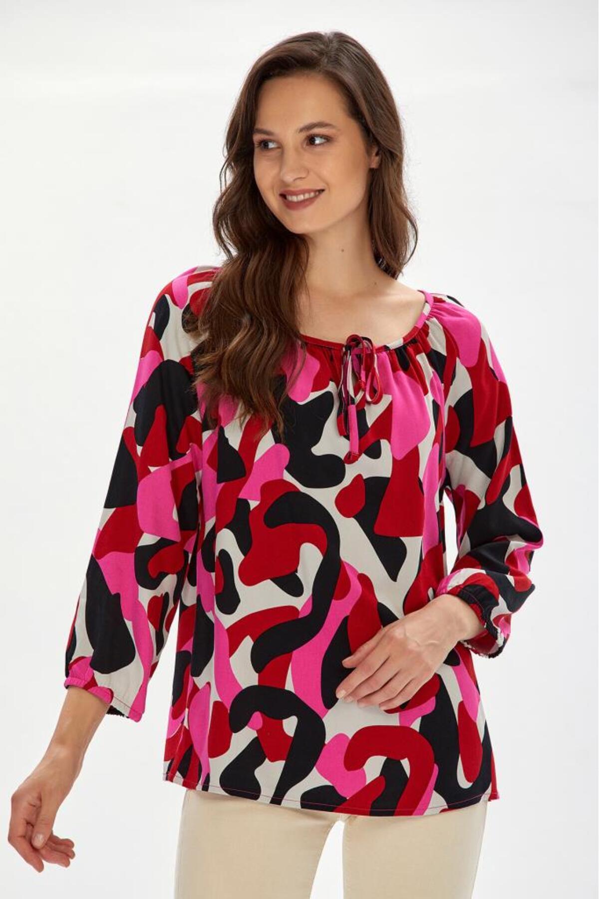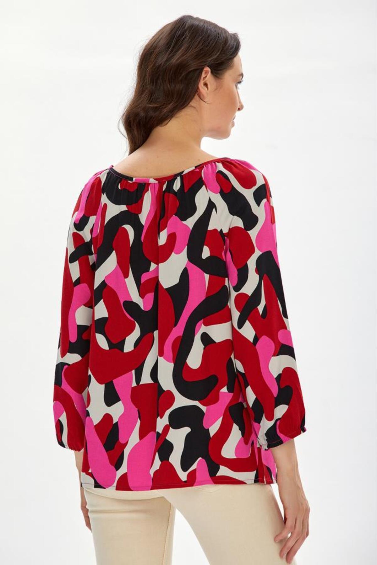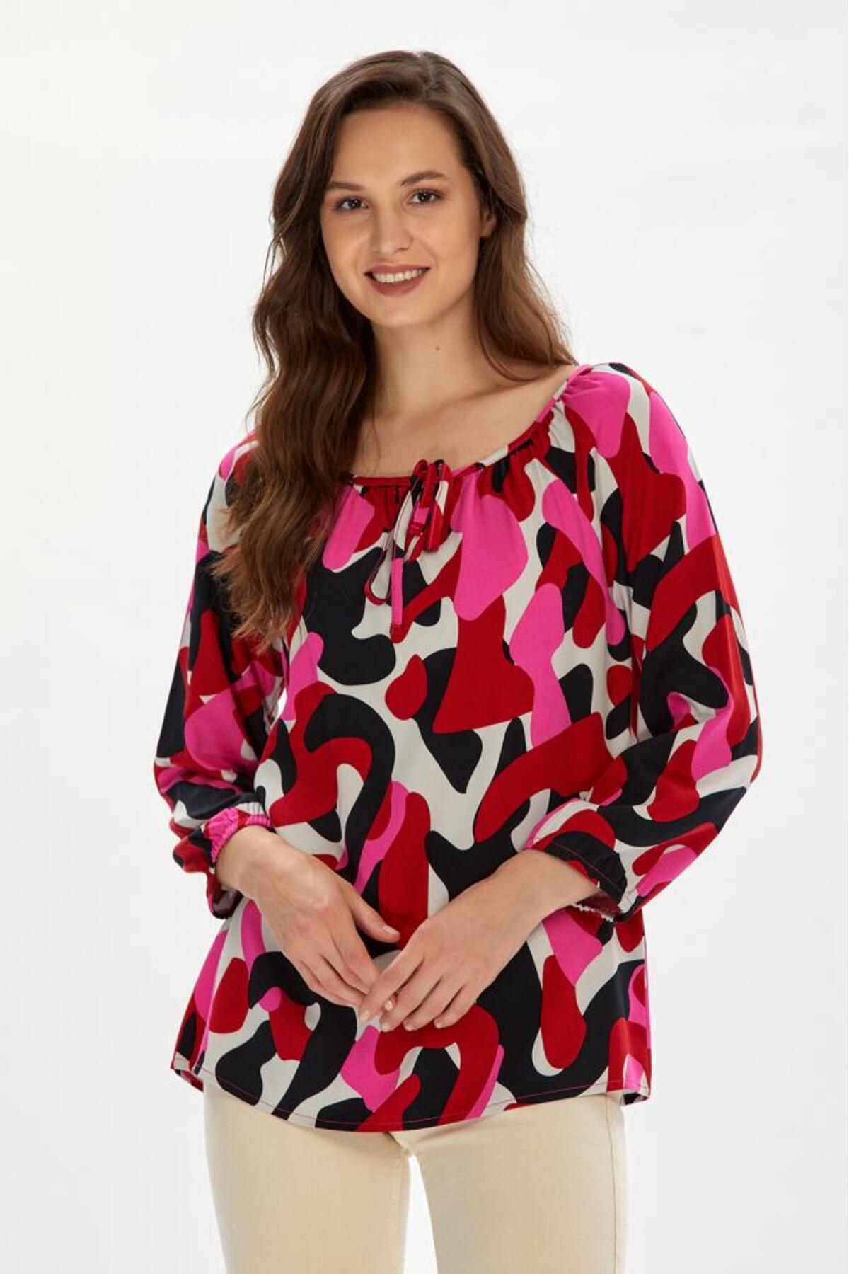Yakası Bağcıklı Kolu Lastikli Desenli Bluz 234-3003 Yakası Bağcıklı Kolu Lastikli Desenli Bluz 234-3003 48
