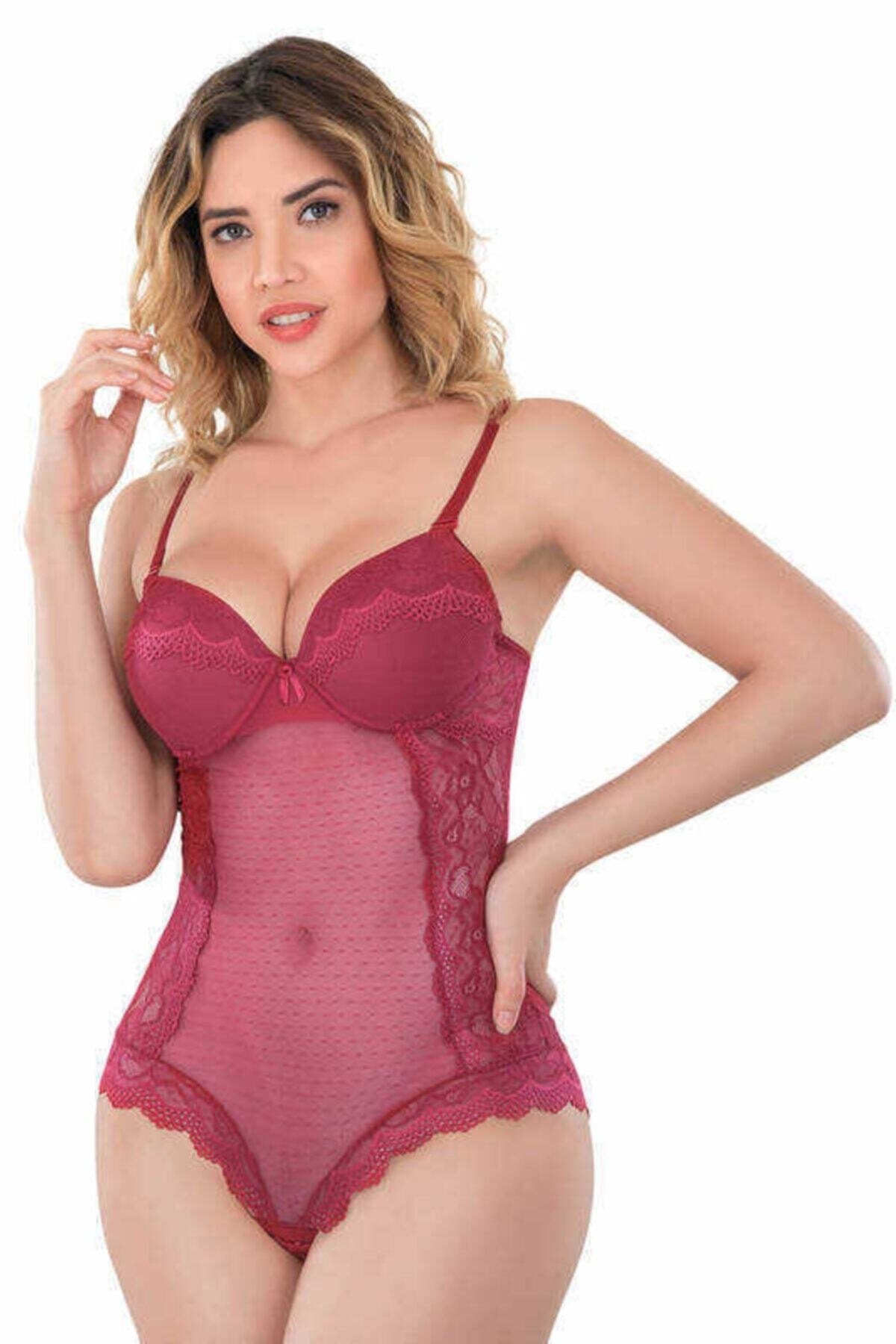 Kırmızı Lame Deri Kaplama Kumaş Body Kırmızı Lame Deri Kaplama Kumaş Body LOVİS5746-B XL