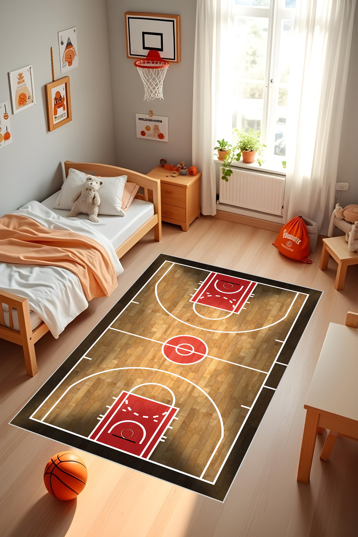 Basketbol Sahası Desenli Dijital Baskılı Halı Kaydırmaz Tabanlı Yıkanabilir Çocuk Odası Halısı Basketbol Sahası Desenli Dijital Baskılı Halı Kaydırmaz Tabanlı Yıkanabilir Çocuk Odası Halısı HD-COCUK 160 x 230