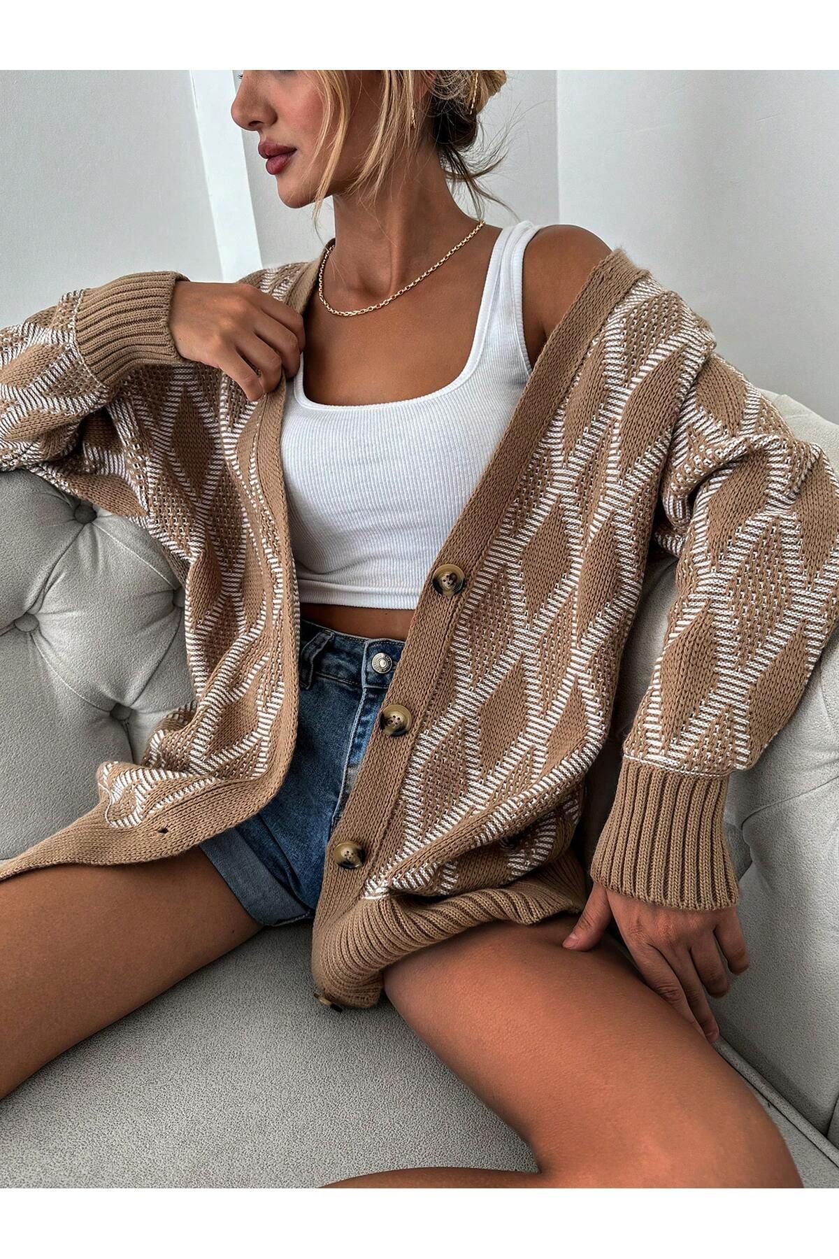 Dört Düğmeli Baklava Desenli Hırka BORDO Dört Düğmeli Baklava Desenli Hırka BORDO 22136-1 2XL