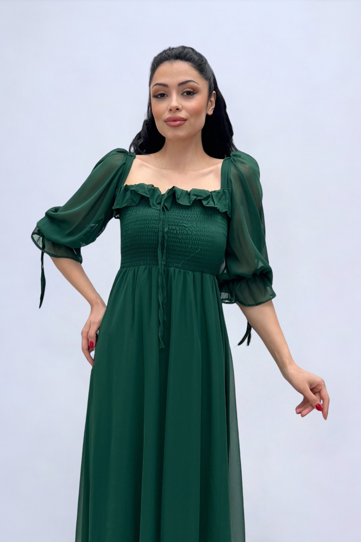 Şifon Kumaş Göğüs Büzgü Detaylı Midi Elbise - SİYAH Şifon Kumaş Göğüs Büzgü Detaylı Midi Elbise - SİYAH GYM-3943 42