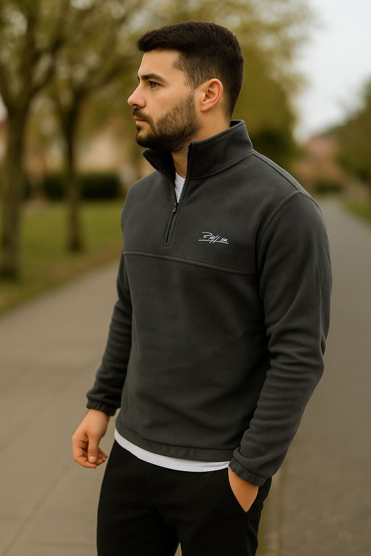 Erkek Nakışlı Polar Sweatshirt Dik Yaka Yarım Fermuar Beli Lastikli Erkek Nakışlı Polar Sweatshirt Dik Yaka Yarım Fermuar Beli Lastikli NPS XL