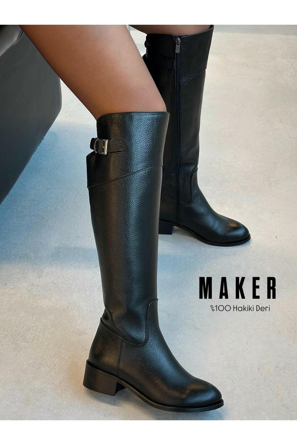 Siyah Kadın Topuklu Deri Çizme Siyah Kadın Topuklu Deri Çizme KKŞNY-00422 41