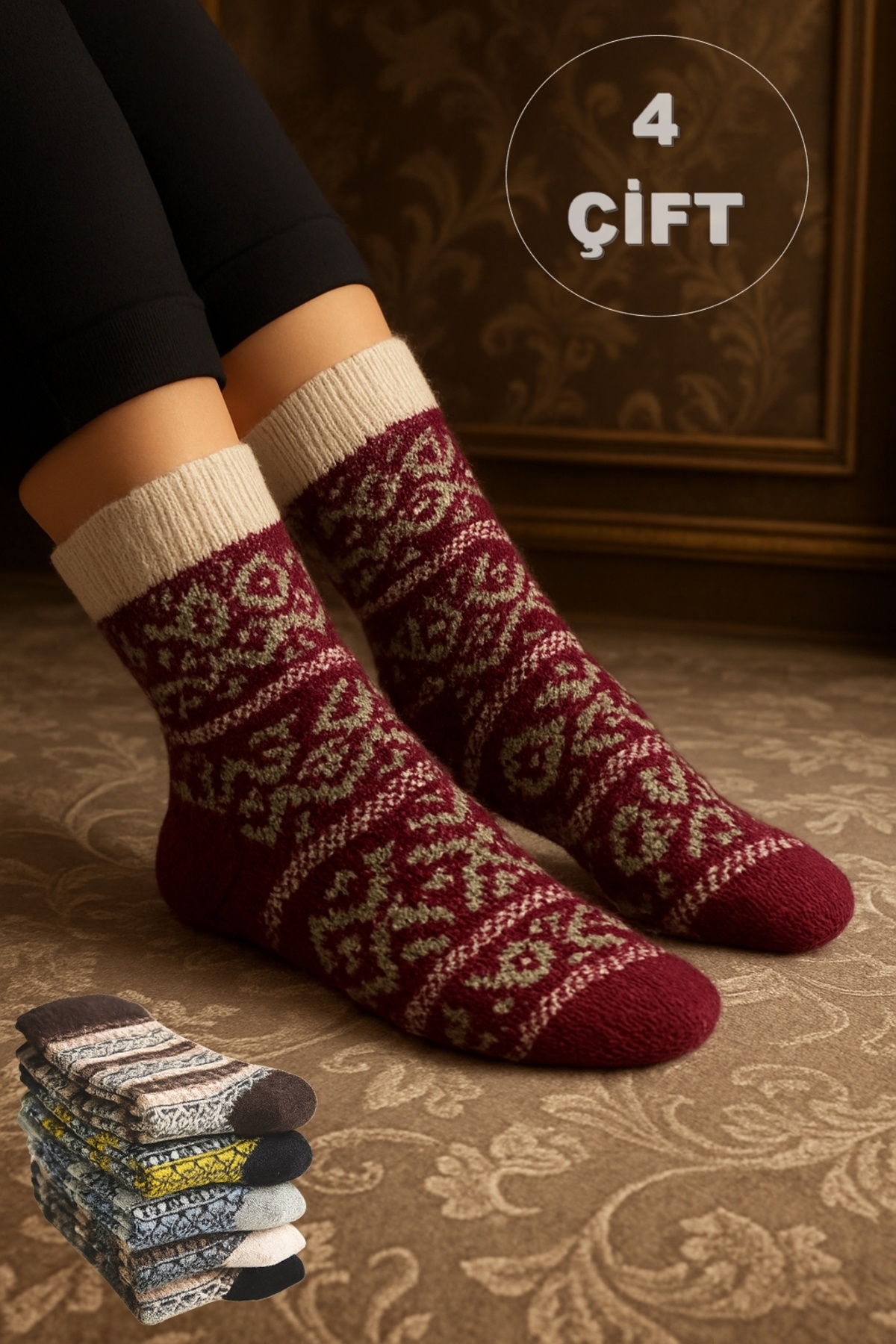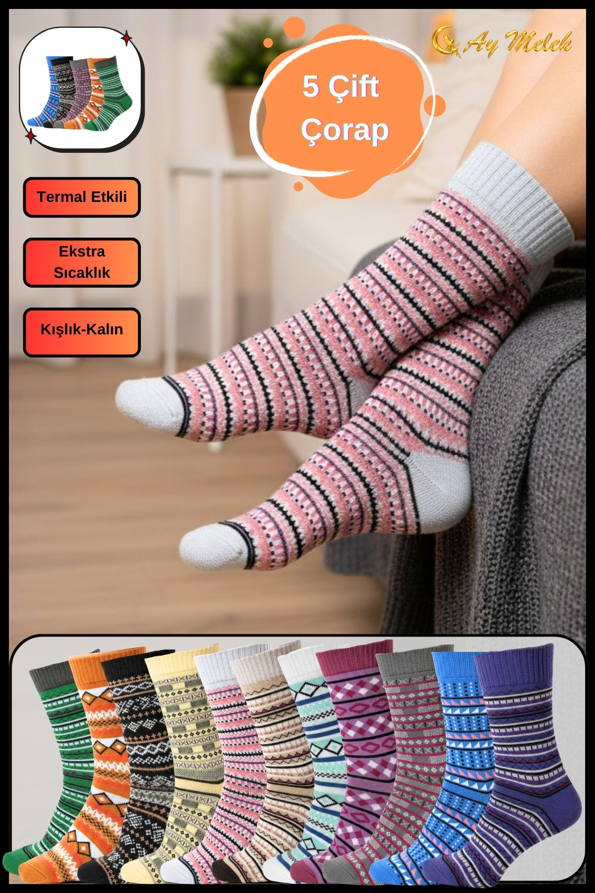 5 Çift Yün Organik Kışlık Çizgili - Motif Desenli Çorap Seti 5 Çift Yün Organik Kışlık Çizgili - Motif Desenli Çorap Seti foot865227 40-43