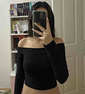 Kadın Siyah Katlı Carmen Yaka Örme Crop Bluz TO00086 Kadın Siyah Katlı Carmen Yaka Örme Crop Bluz TO00086 40