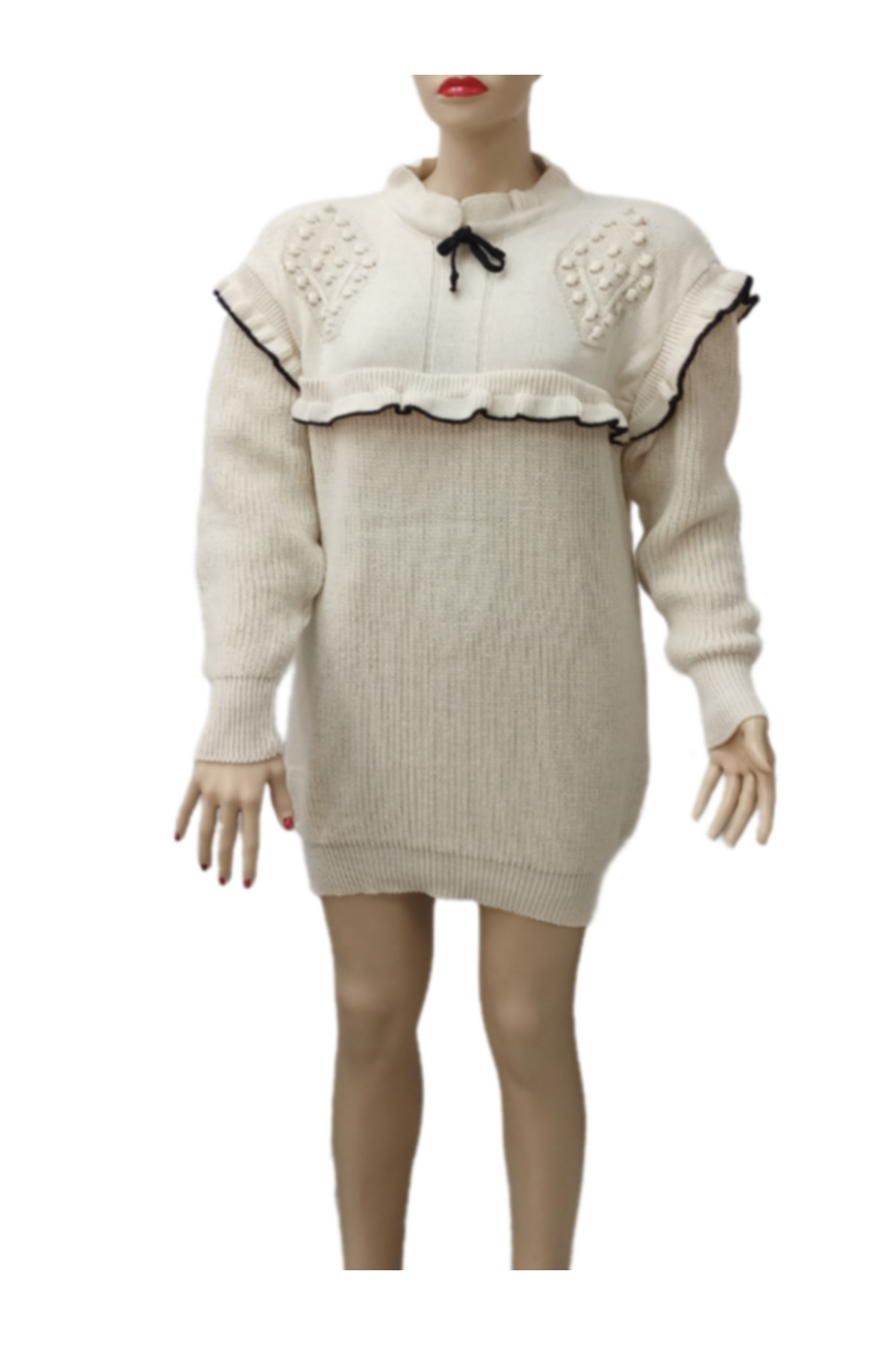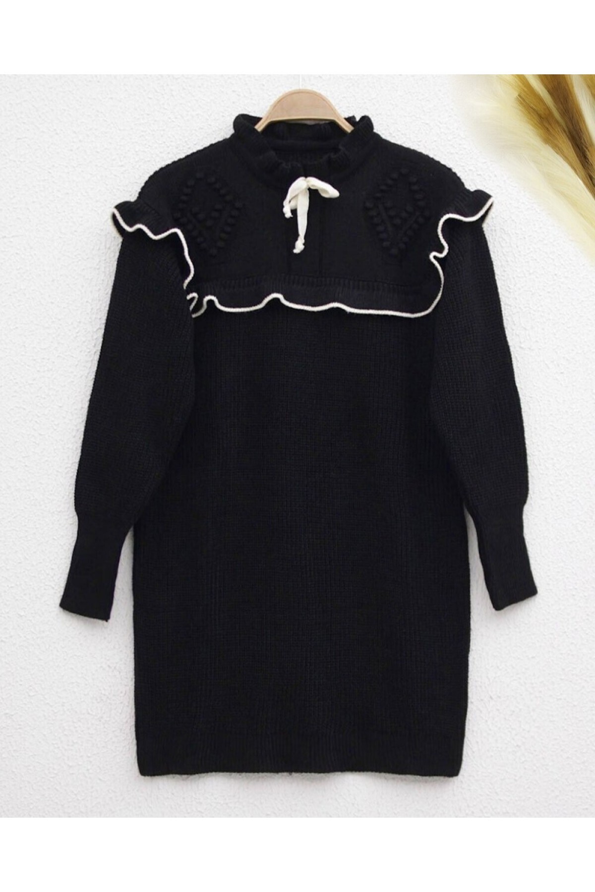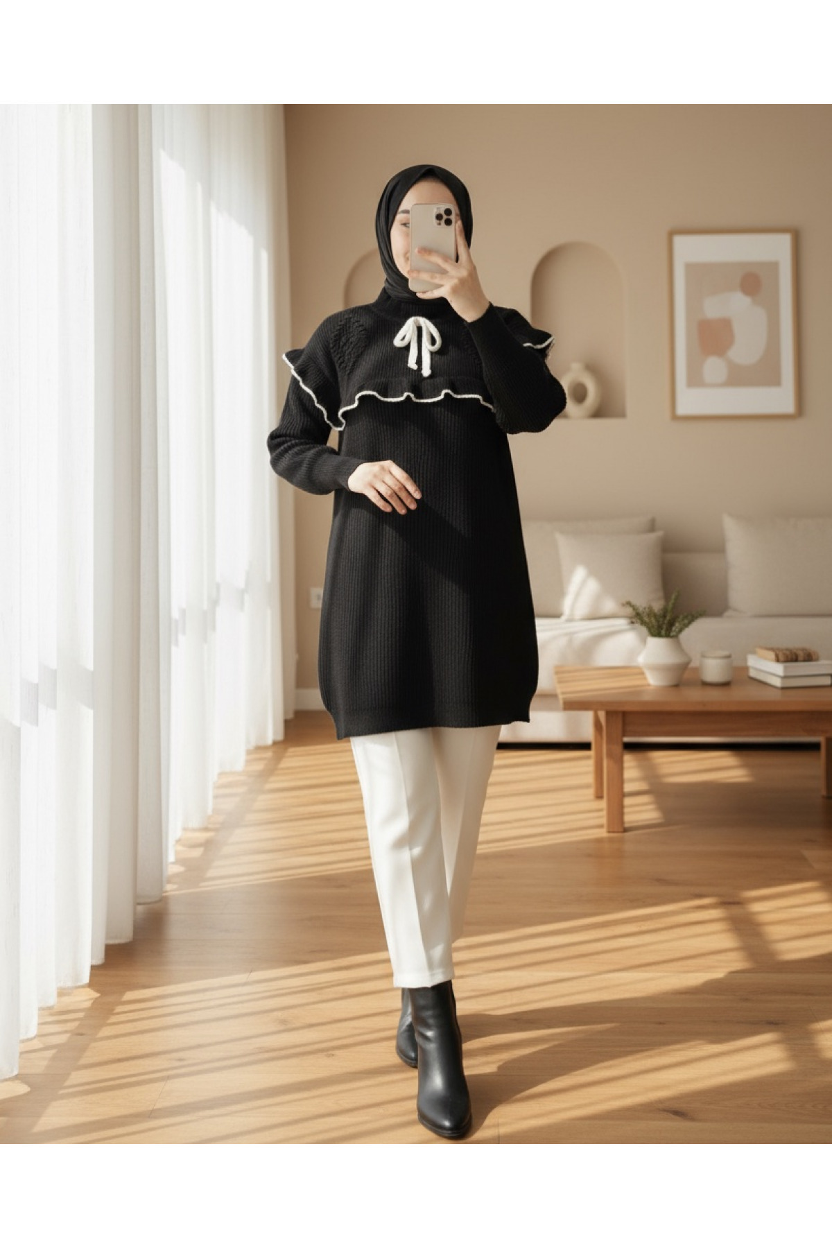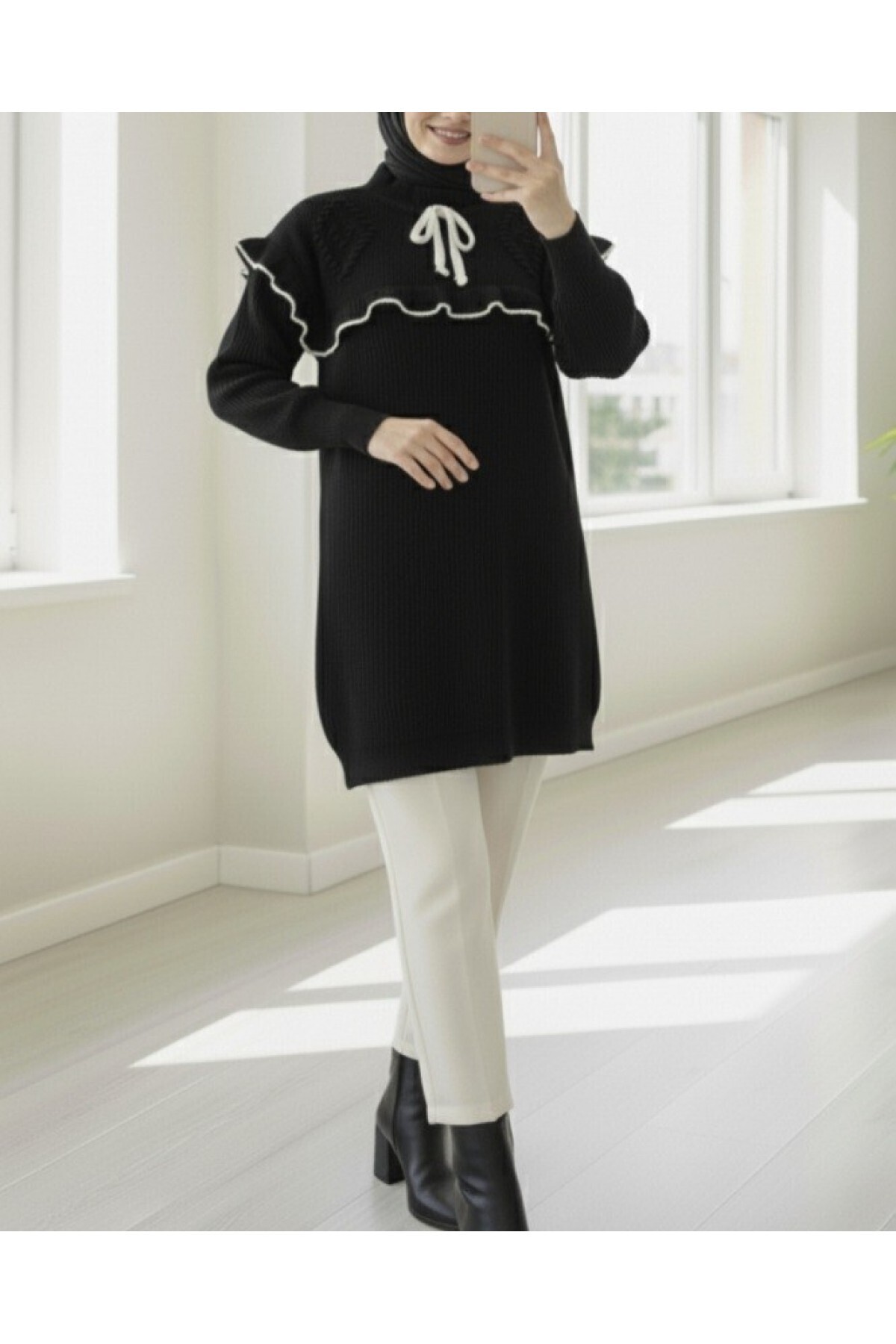 Yakası Fırfırlı Bağcıklı Triko Tunik -Siyah Yakası Fırfırlı Bağcıklı Triko Tunik -Siyah TY295-8007 Standart