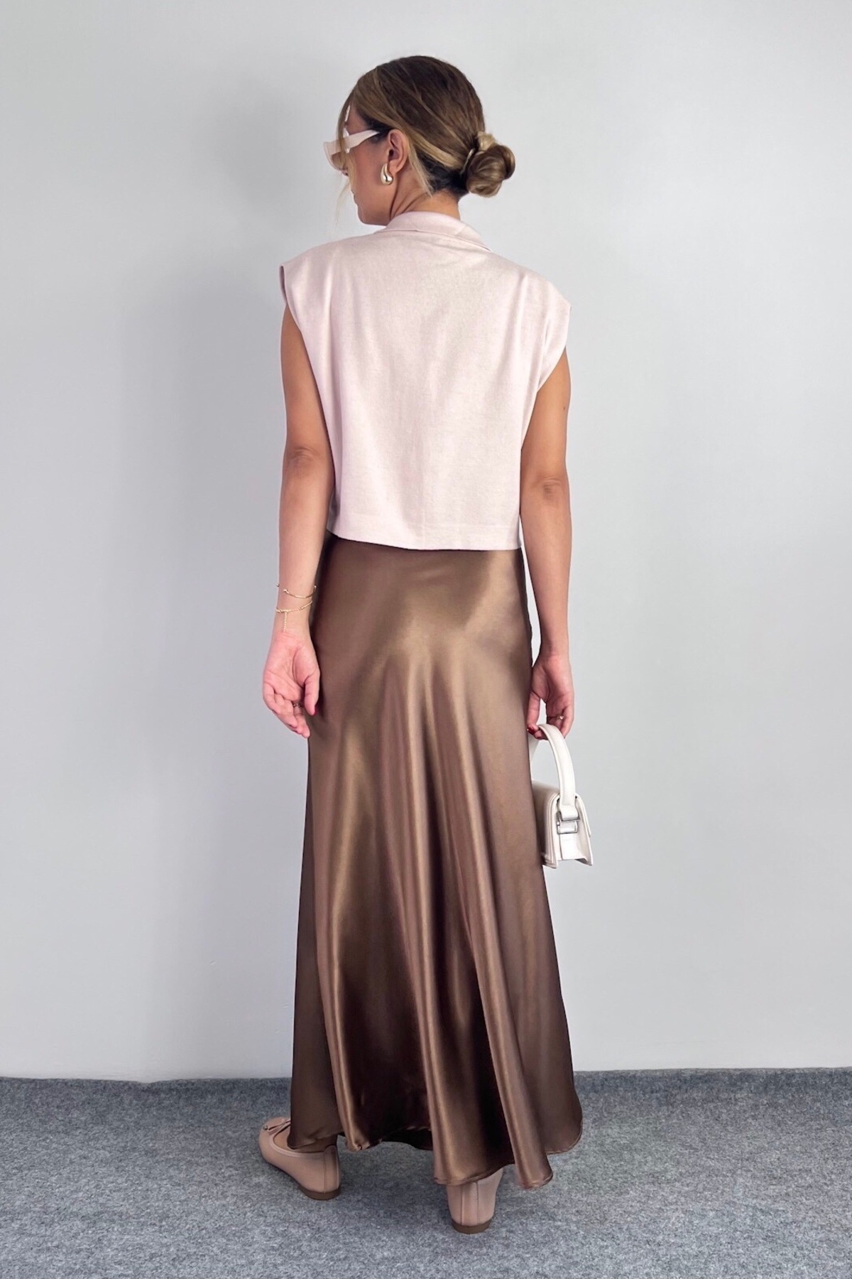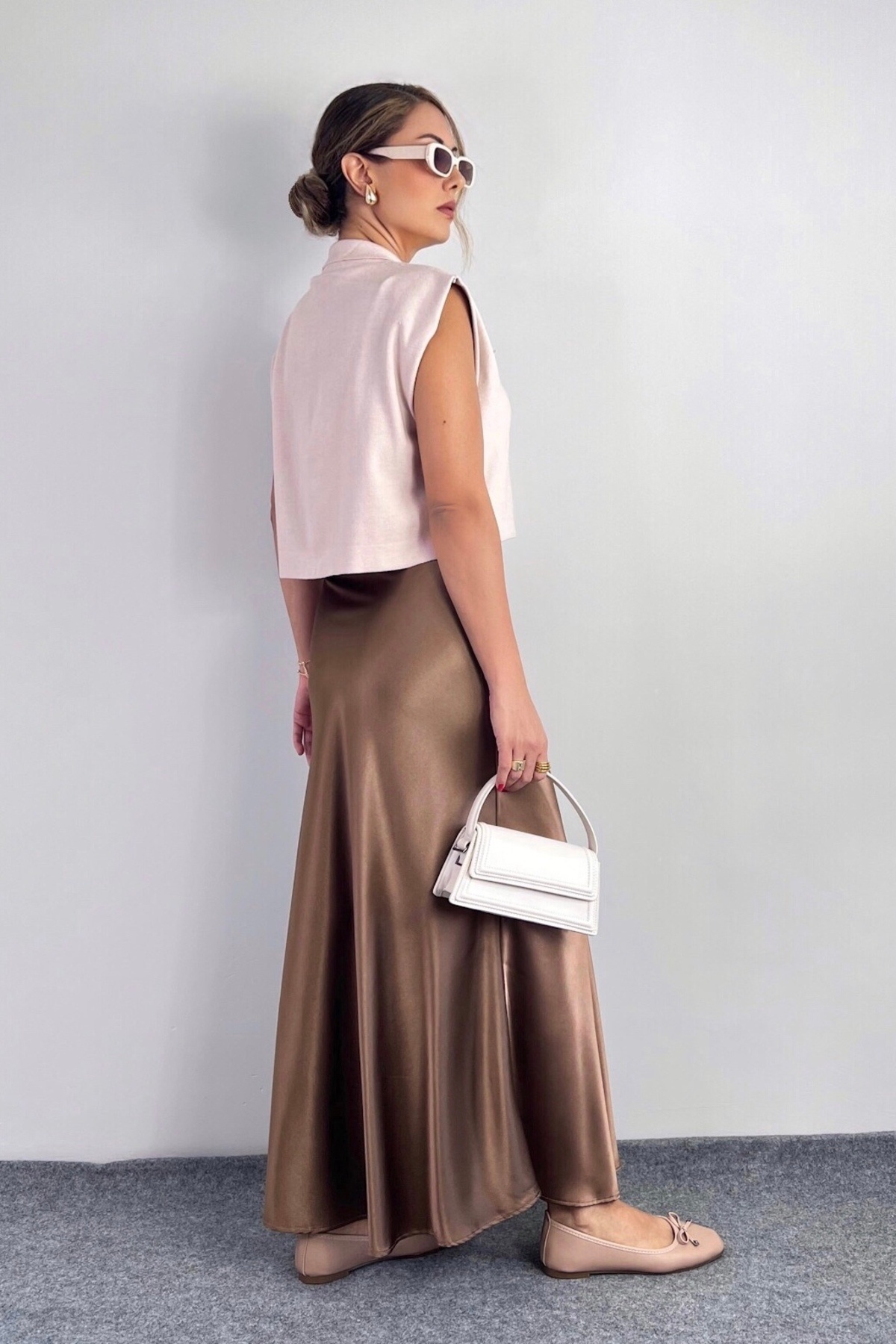 Luna Bel Lastikli Maksi Boy Bronz Saten Etek Luna Bel Lastikli Maksi Boy Bronz Saten Etek 1225 L