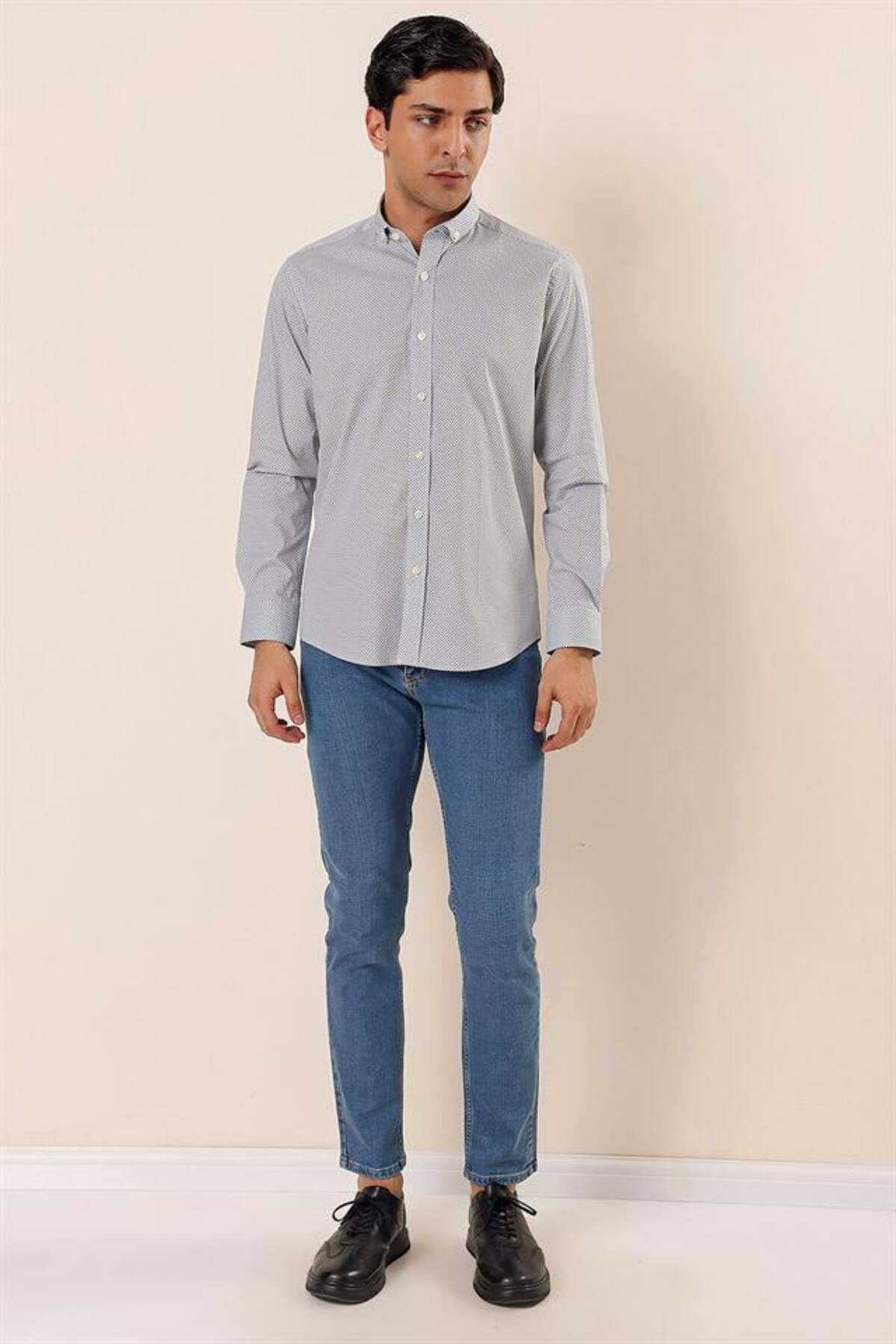 Beyaz Uzun Kollu Baskılı Cepsiz Pamuklu Likralı Casual Slim Fit Dar Kesim Gömlek 1004230120 Beyaz Uzun Kollu Baskılı Cepsiz Pamuklu Likralı Casual Slim Fit Dar Kesim Gömlek 1004230120 2XL