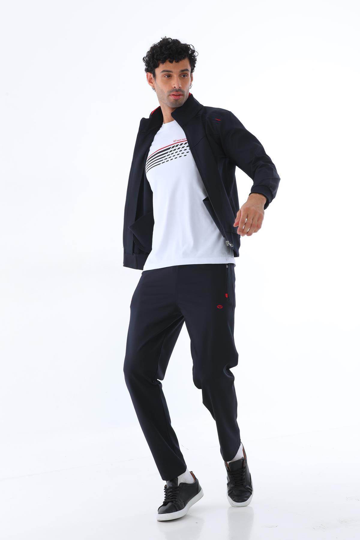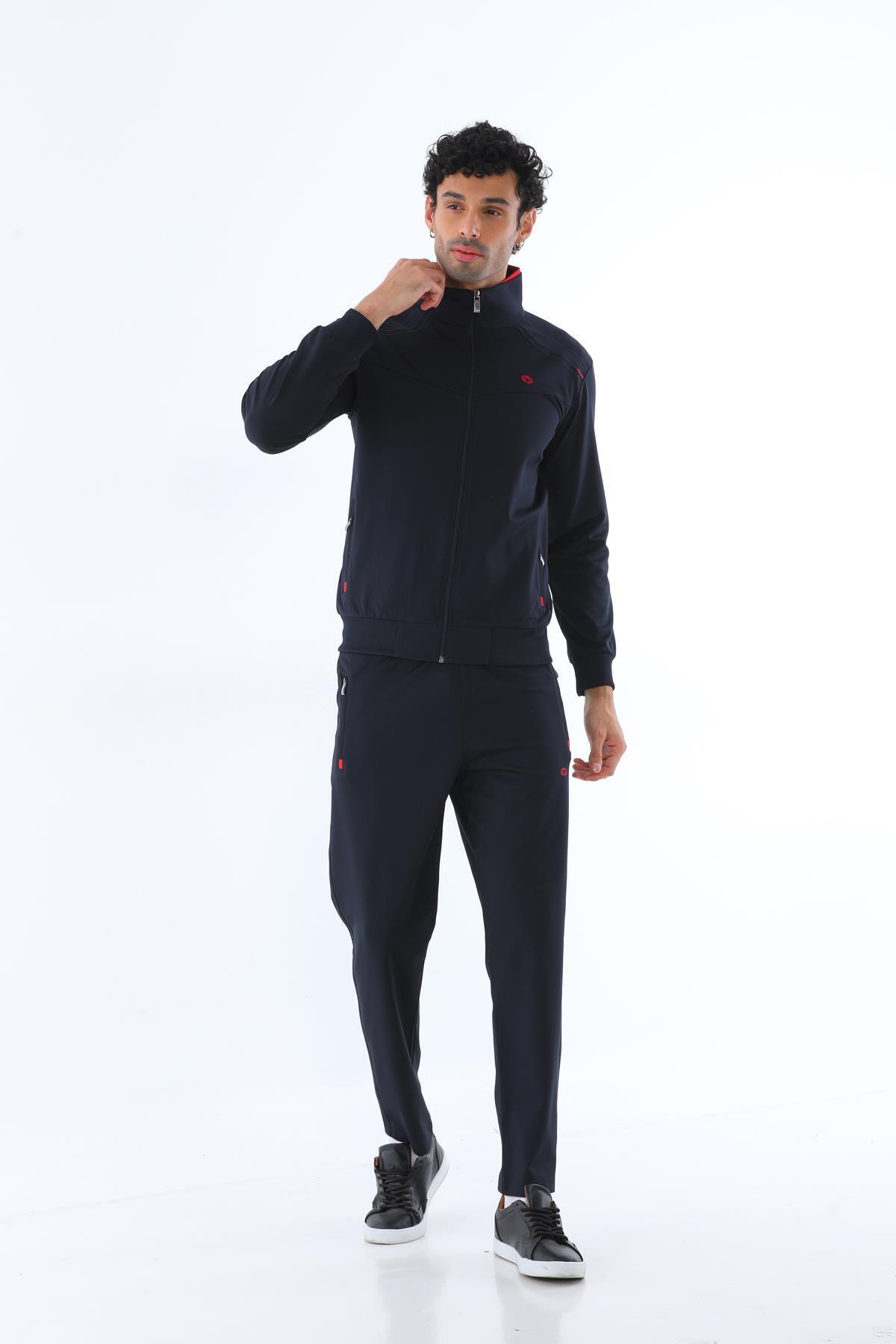 Erkek İki İplik Dalgıç Kumaş Fermuarlı Lacivert-Kırmızı Spor Eşofman Takımı - 7506 Erkek İki İplik Dalgıç Kumaş Fermuarlı Lacivert-Kırmızı Spor Eşofman Takımı - 7506 7506EET 3XL