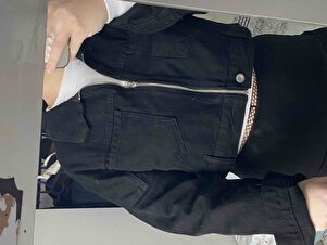 Kadın Siyah Çift Cepli Fermuarlı Yıkamalı Crop Denim Ceket Bcdf-235410 Kadın Siyah Çift Cepli Fermuarlı Yıkamalı Crop Denim Ceket Bcdf-235410 BCDF-235410 40