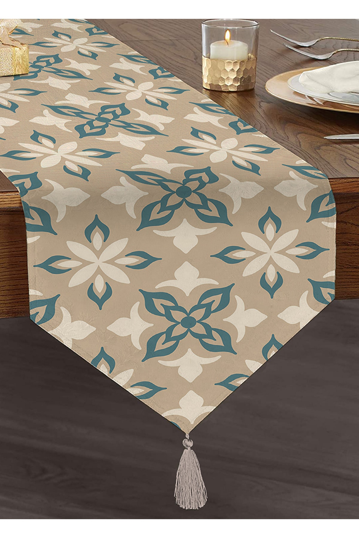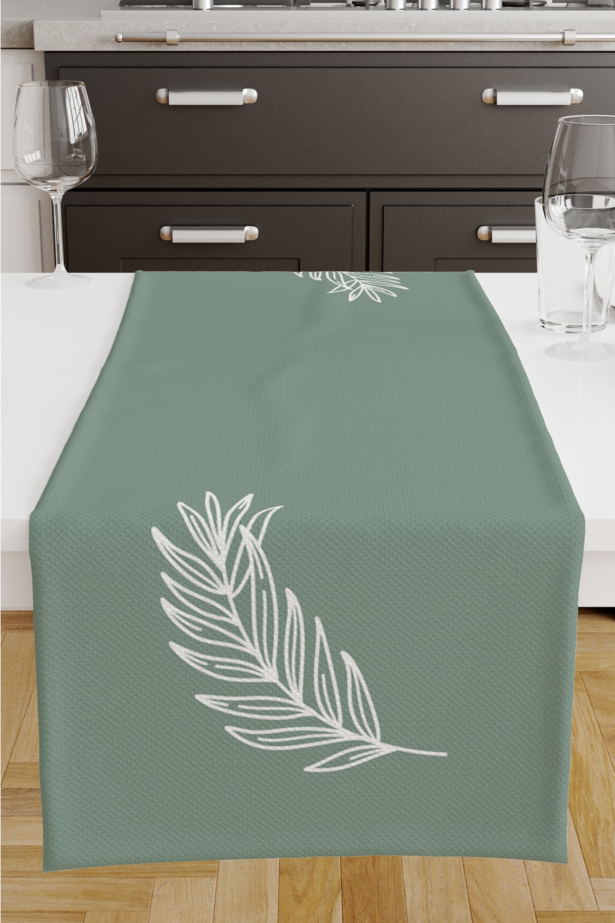 Açık Yeşil Çiçek Desenli Baskılı Süet Runner Masa Örtüsü Açık Yeşil Çiçek Desenli Baskılı Süet Runner Masa Örtüsü RNR-SU تک سایز