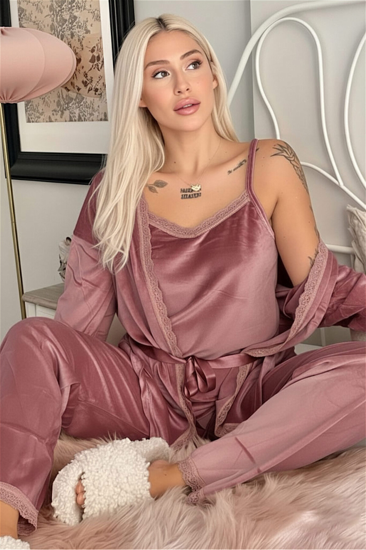 Lacivert Navy Exclusive Kadife Sabahlıklı Kadın Pijama Takımı Lacivert Navy Exclusive Kadife Sabahlıklı Kadın Pijama Takımı 2484 2XL