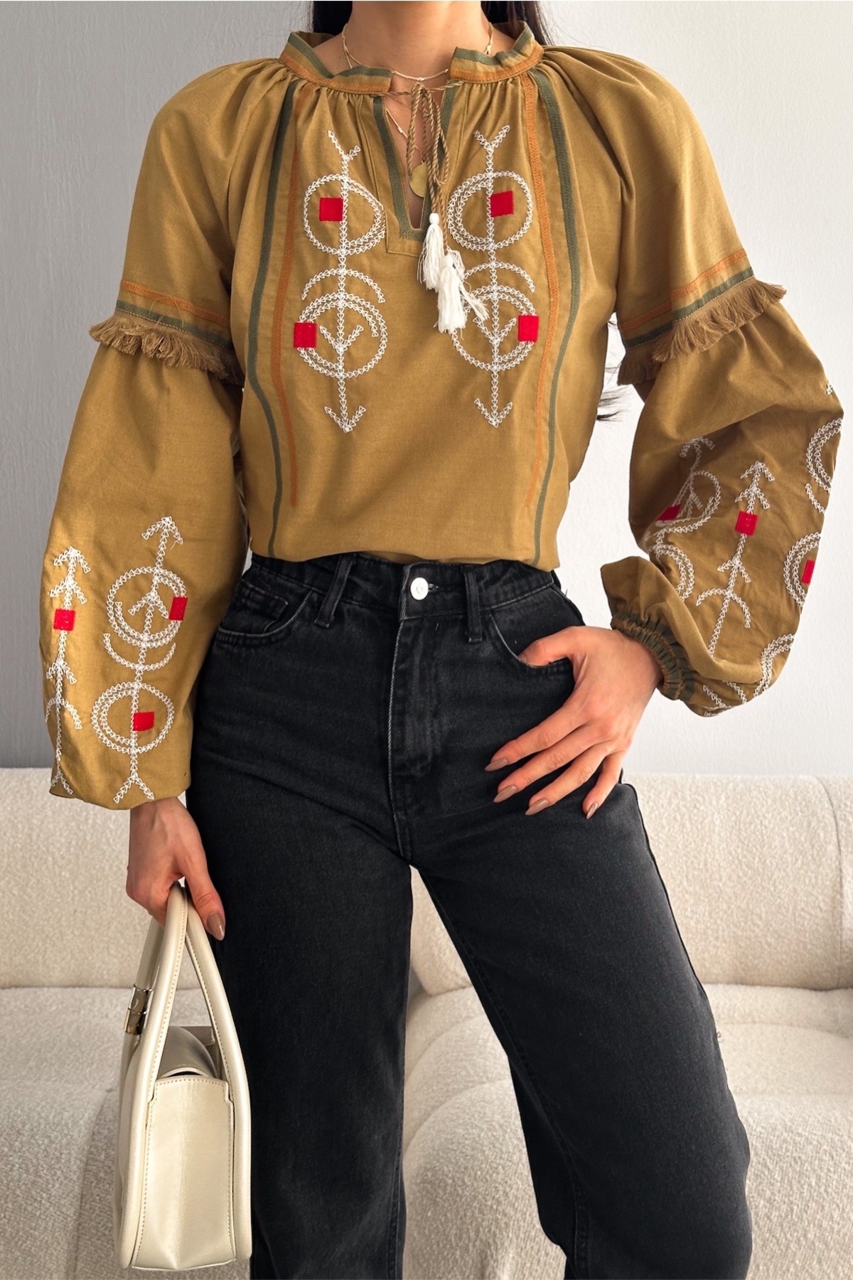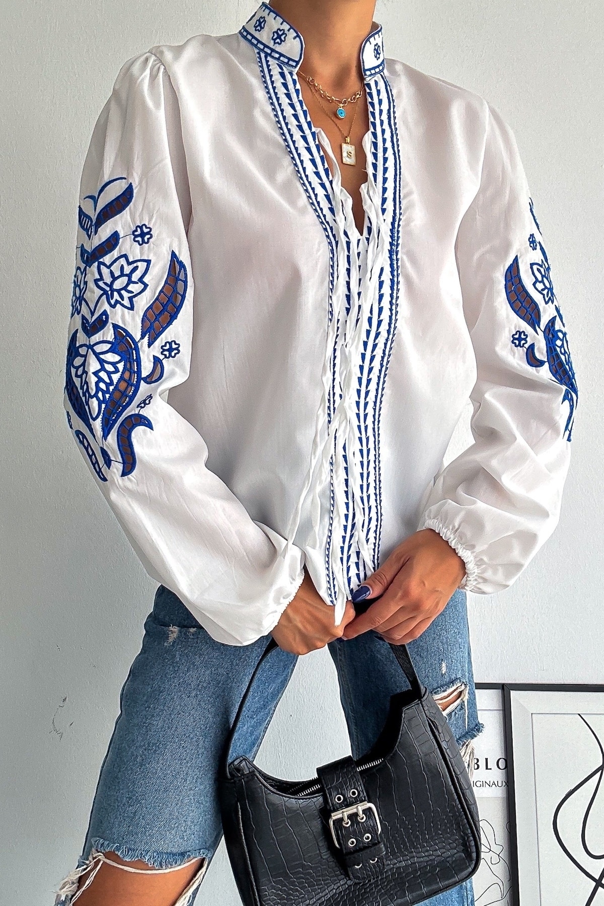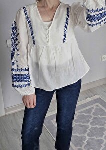 Kadın Yeni Sezon Düğme Detaylı Nakış İşlemeli Pamuk Bluz Kadın Yeni Sezon Düğme Detaylı Nakış İşlemeli Pamuk Bluz 5491ss L