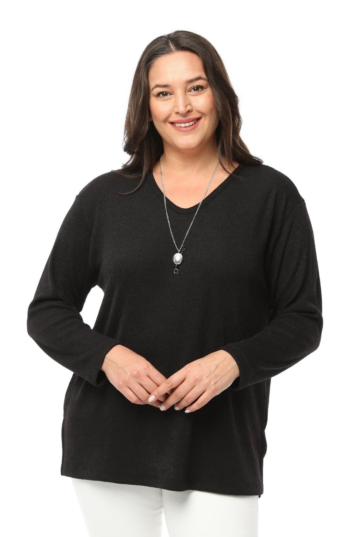 Büyük Beden Kolye Hediyeli Yeni Sezon Yumuşak Dokulu Konfor Modeli Anne Düz Renk V Yaka Triko Kazak Büyük Beden Kolye Hediyeli Yeni Sezon Yumuşak Dokulu Konfor Modeli Anne Düz Renk V Yaka Triko Kazak Plus Size Kışlık Hırka Bluz TARZ8789 42