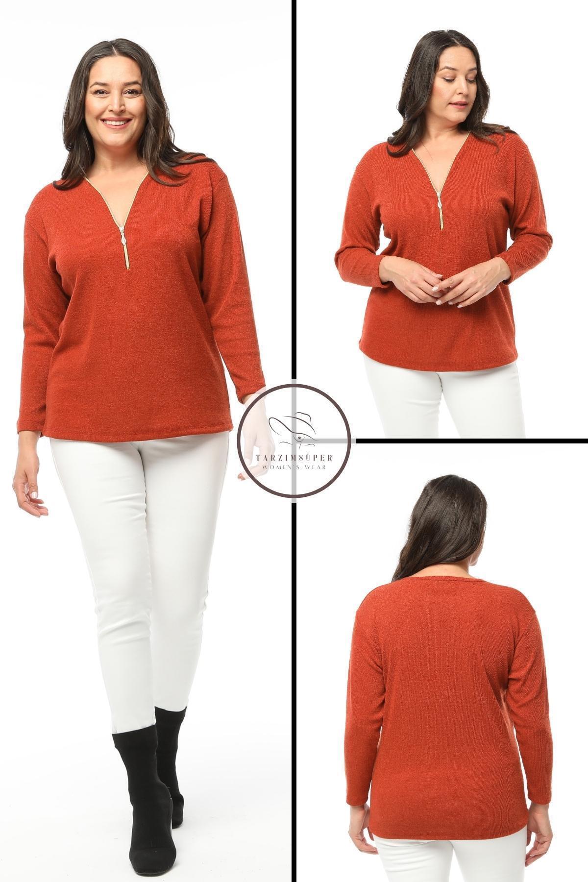 Büyük Beden Yakası Fermuarlı Konfor Modeli Yeni Sezon Yumuşak Dokulu V Yaka Şık Günlük Triko Kazak Büyük Beden Yakası Fermuarlı Konfor Modeli Yeni Sezon Yumuşak Dokulu V Yaka Şık Günlük Triko Kazak Baharlık Kışlık Hırka Bluz TARZ8791 42