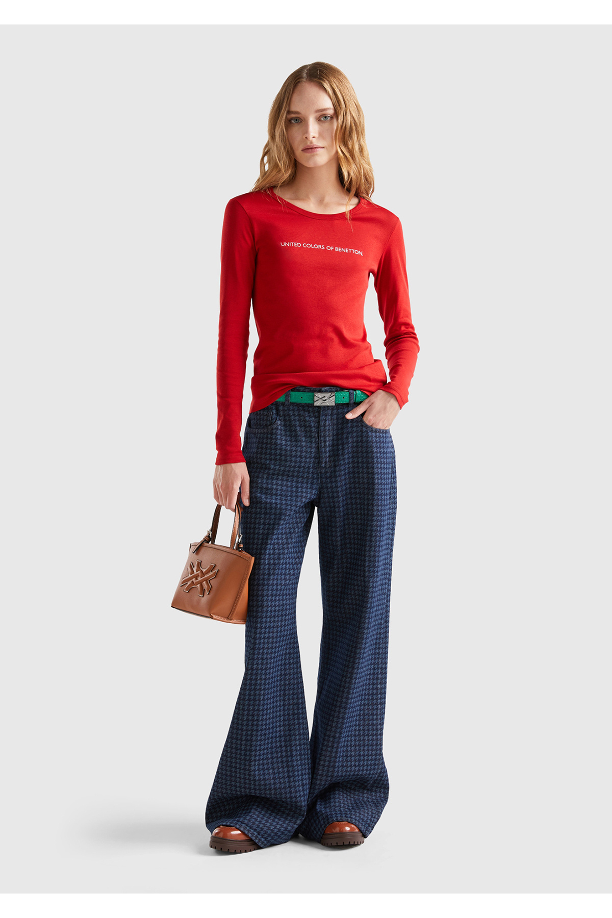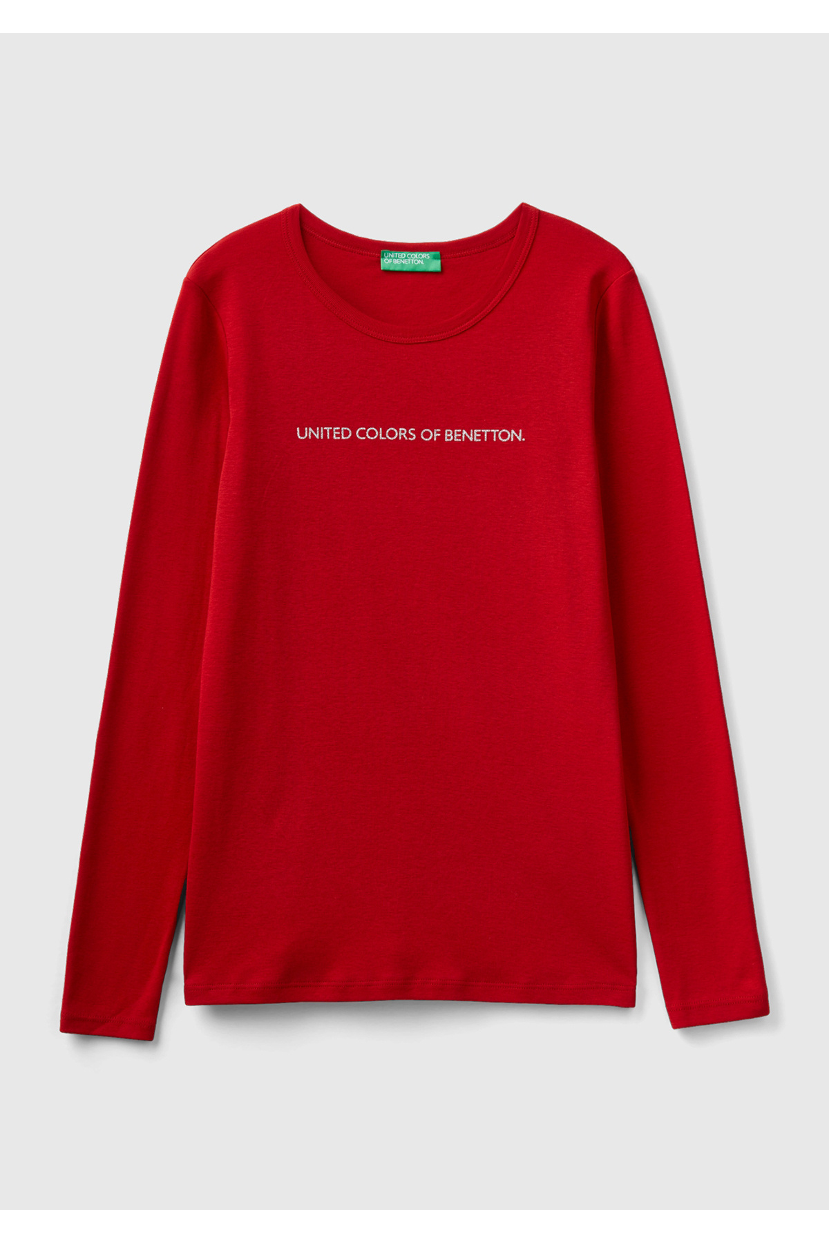 Kadın Vişne Çürüğü Bisiklet Yaka Benetton Yazılı Uzun Kollu Tshirt Kadın Vişne Çürüğü Bisiklet Yaka Benetton Yazılı Uzun Kollu Tshirt 123A3GA2E16G0 L