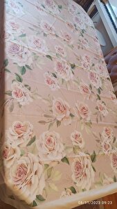 Krem Rengi Gül Desenli Süet Dertsiz Masa Örtüsü Krem Rengi Gül Desenli Süet Dertsiz Masa Örtüsü MS-SU 155 x 155