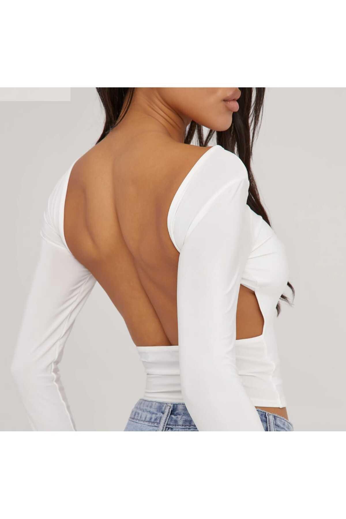 Sırt Dekolteli Çapraz Bağlamalı Crop Bluz Sırt Dekolteli Çapraz Bağlamalı Crop Bluz 61616717 L