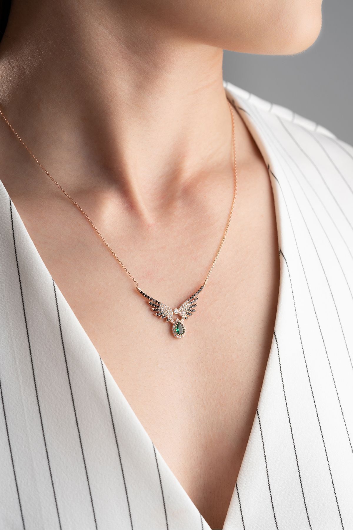 925 Ayar Gümüş Kanat Kolye 925 Ayar Gümüş Kanat Kolye DL5735 تک سایز