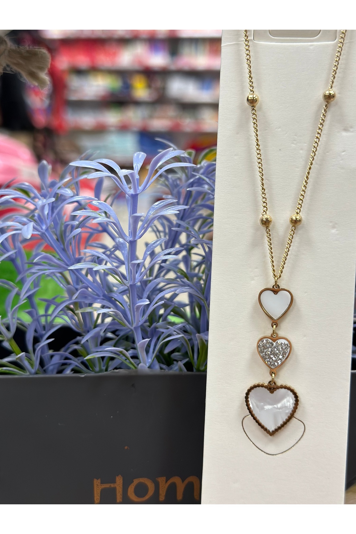 Rose-Silver-Gold Üç Renkli Üç Sıralı Minik Toplu Çelik Kolye Rose-Silver-Gold Üç Renkli Üç Sıralı Minik Toplu Çelik Kolye nc755 50 cm