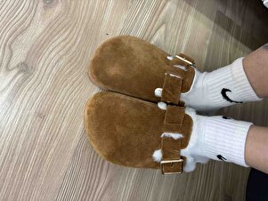 Zeta Kürklü Kadın Hakiki Deri Tokalı Kemerli Kürklü Taba Süet Terlik Zeta Kürklü Kadın Hakiki Deri Tokalı Kemerli Kürklü Taba Süet Terlik MNJ.098 41