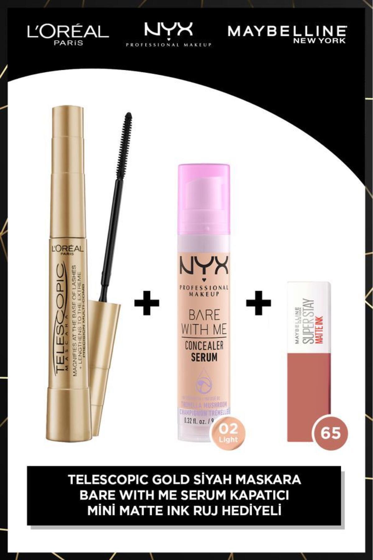 2'li Telescopic Gold Maskara+ 100 ml Seyahat Boy Micellar + Matte Ink Mini Ruj 65 2'li Telescopic Gold Maskara+ 100 ml Seyahat Boy Micellar + Matte Ink Mini Ruj 65 PKTTLEBM تک سایز
