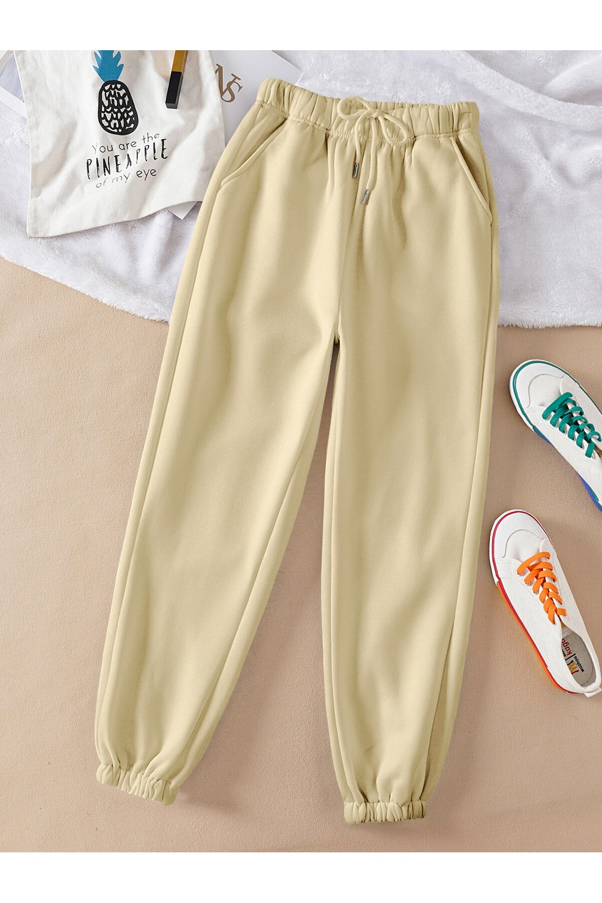 Essnce Solid Drawstring Waist Thermal Lined 4 Mevsim Eşofman Essnce Solid Drawstring Waist Thermal Lined 4 Mevsim Eşofman AdritSWEATbesof-15247 XL