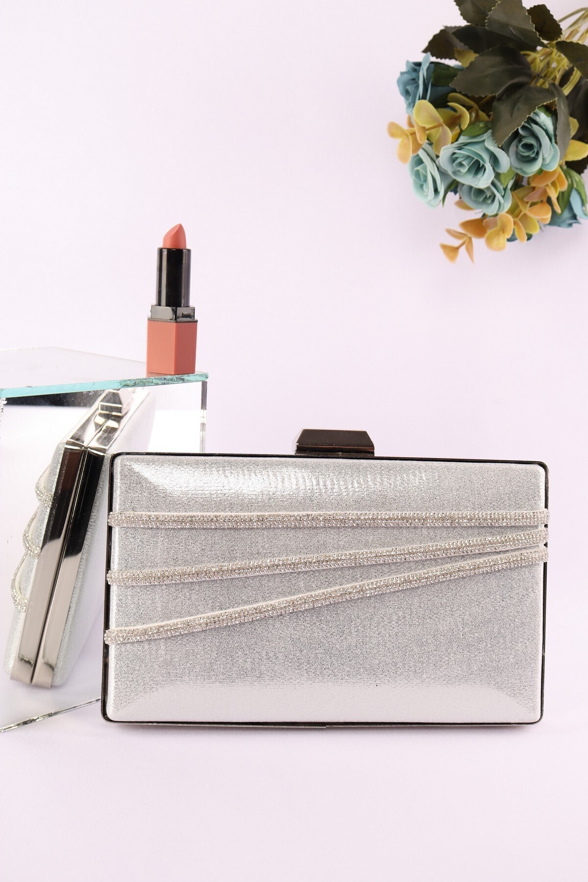 Platin Renk Saten Kumaş Çiçek Motifli Taşlı Elde ve Askılı Abiye Portfoy Clutch Gece Çantası Platin Renk Saten Kumaş Çiçek Motifli Taşlı Elde ve Askılı Abiye Portfoy Clutch Gece Çantası FRP0704 تک سایز