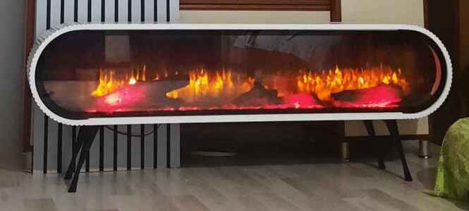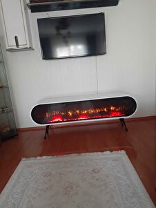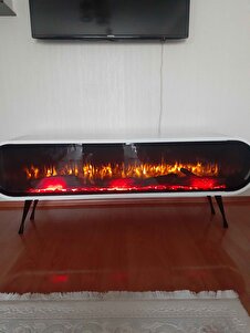 Duo Mdf Şömineli Beyaz Tv Ünitesi Tv Sehpası Duo Mdf Şömineli Beyaz Tv Ünitesi Tv Sehpası BRDDUO تک سایز