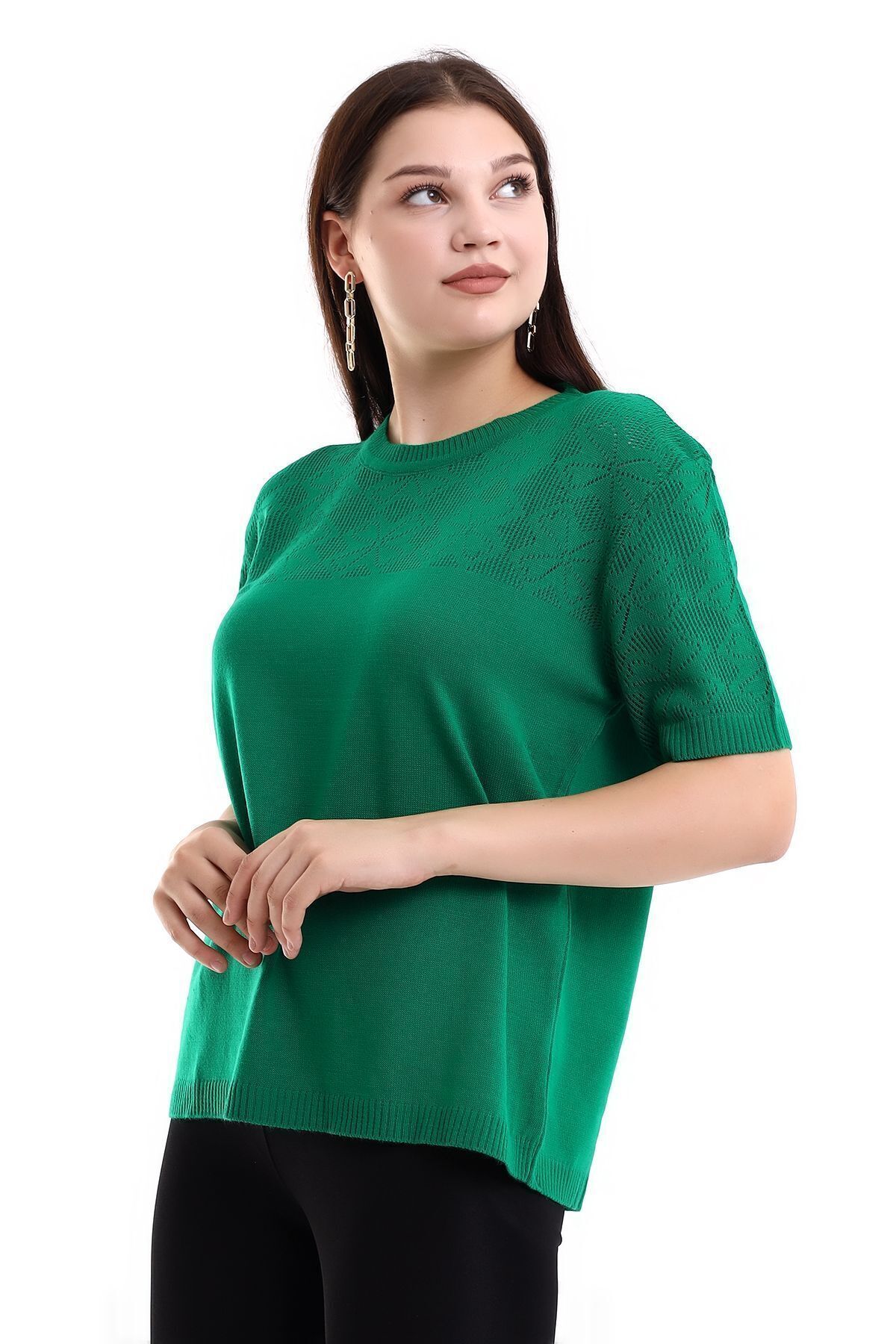 Kadın Yaka Motifli Kısa Kol Triko Kazak Kadın Yaka Motifli Kısa Kol Triko Kazak GND-MTF001 XL/2XL
