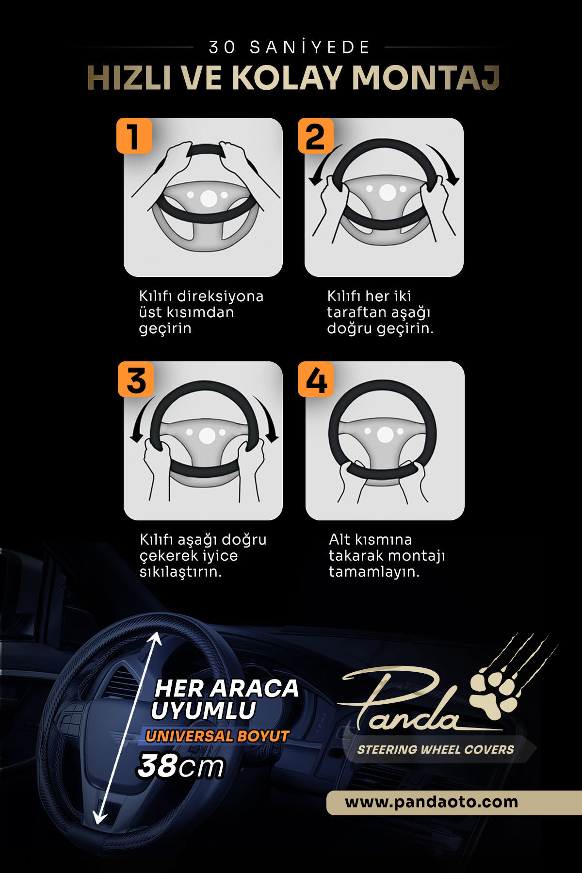 PANDA OTO DİREKSİYON KILIFI - DELİKLİ DERİ / VELUCANTRA KUMAŞ PANDA OTO DİREKSİYON KILIFI - DELİKLİ DERİ / VELUCANTRA KUMAŞ P121 تک سایز