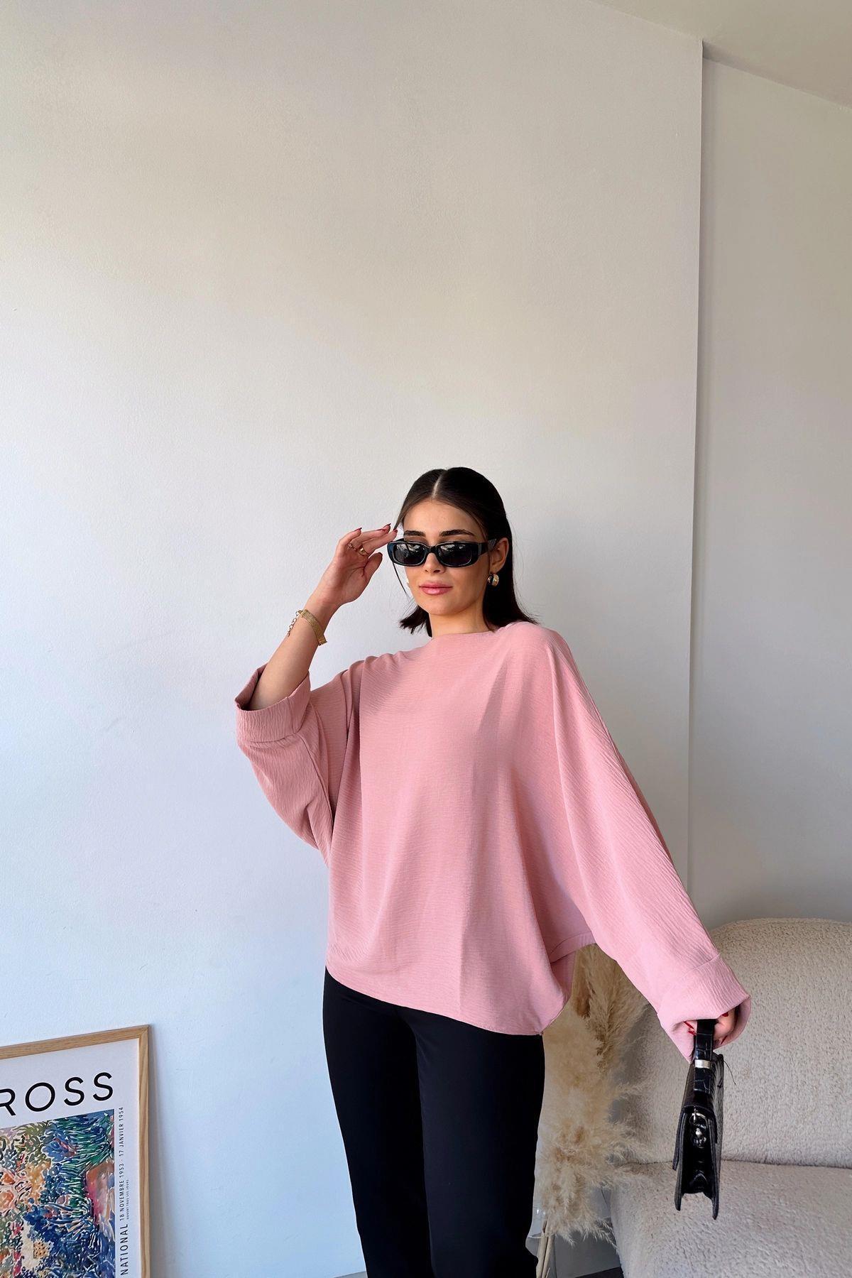 Kadın Pudra Airobin Yarasa Duble Kol Salaş Bluz Ekstra Oversize Yuvarlak Yaka - Tesettüre Uygun Kadın Pudra Airobin Yarasa Duble Kol Salaş Bluz Ekstra Oversize Yuvarlak Yaka - Tesettüre Uygun NY2943 42