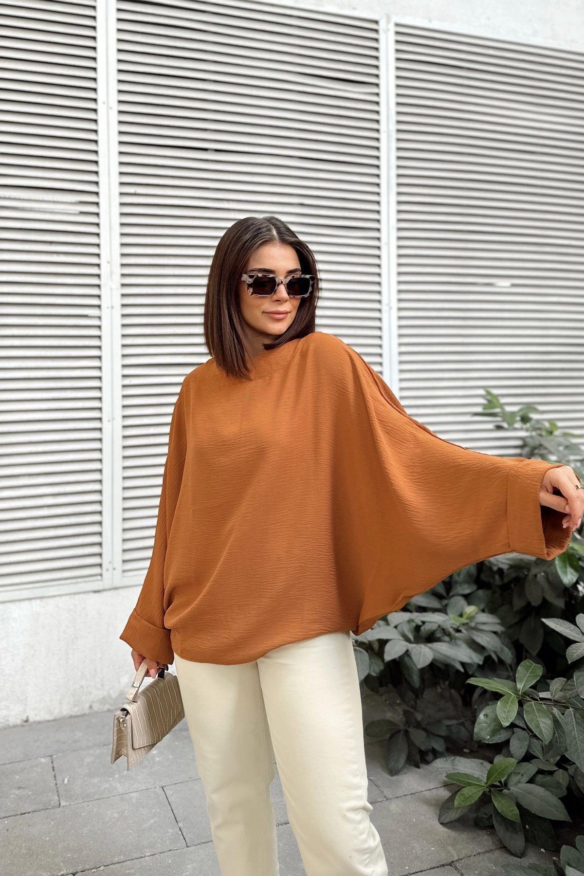 Kadın Taba Airobin Yarasa Duble Kol Salaş Bluz Ekstra Oversize Yuvarlak Yaka - Tesettüre Uygun Kadın Taba Airobin Yarasa Duble Kol Salaş Bluz Ekstra Oversize Yuvarlak Yaka - Tesettüre Uygun NY2943 42