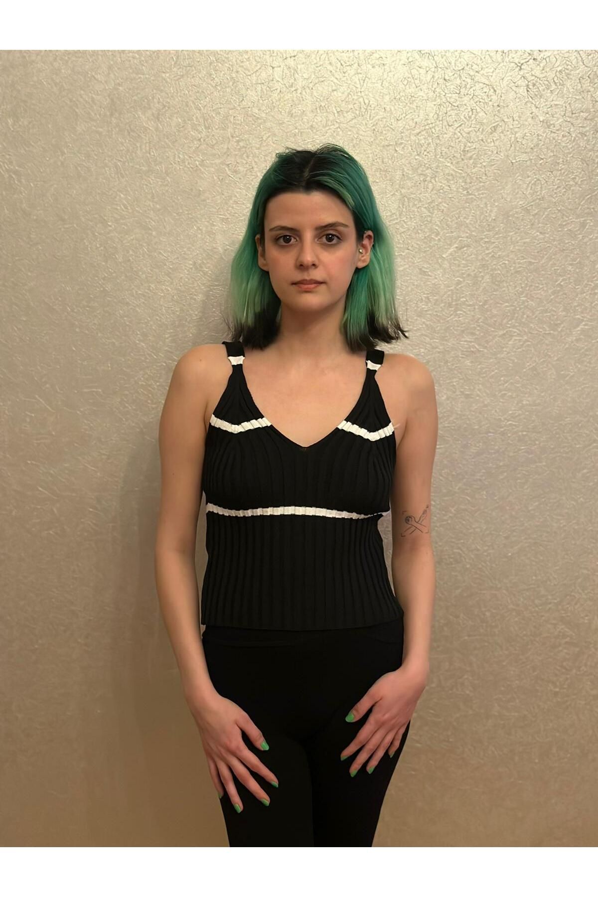 ZİNCİR DETAYLI TRİKO BLUZ ZİNCİR DETAYLI TRİKO BLUZ TSBZNC1 Standart